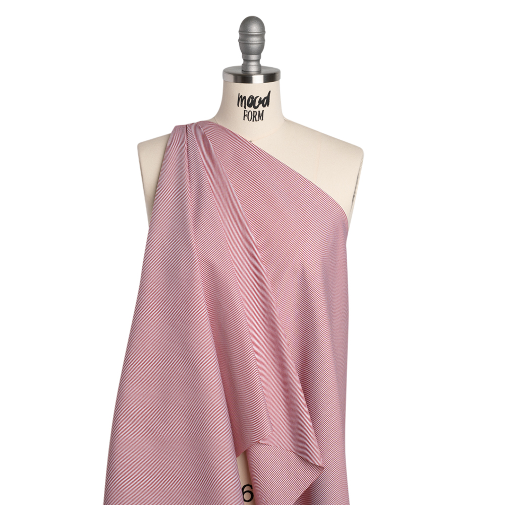 Whether you’re a candy-striper or are just looking to pop into the candy shop, this Dark Red and White Striped Cotton Oxford Shirting is the perfect companion to all your appetizing activities—featuring a slightly tactile hand and crisp, slightly structured drape.Suggested Projects: Button-Ups, Pants, Shorts, DressesContent: CottonStretch: NoneOpacity: Slightly TranslucentDark red and white stripes race across this Oxford shirting. Thanks to its Oxford construction it boasts a slightly tactile hand and crisp, slightly structured drape—ready to accompany you anywhere you go, whether it’s to work or to bed! With its incredibly comfortable nature, we envision lightweight pajama sets for lounging around the house, button-downs to wear into the office, shirt dresses for an afternoon coffee date, and more! Slightly translucent, a lining can be added to increase opacity and structure.