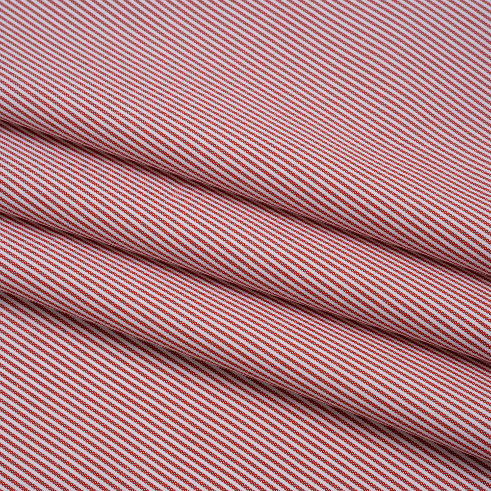 Whether you’re a candy-striper or are just looking to pop into the candy shop, this Dark Red and White Striped Cotton Oxford Shirting is the perfect companion to all your appetizing activities—featuring a slightly tactile hand and crisp, slightly structured drape.