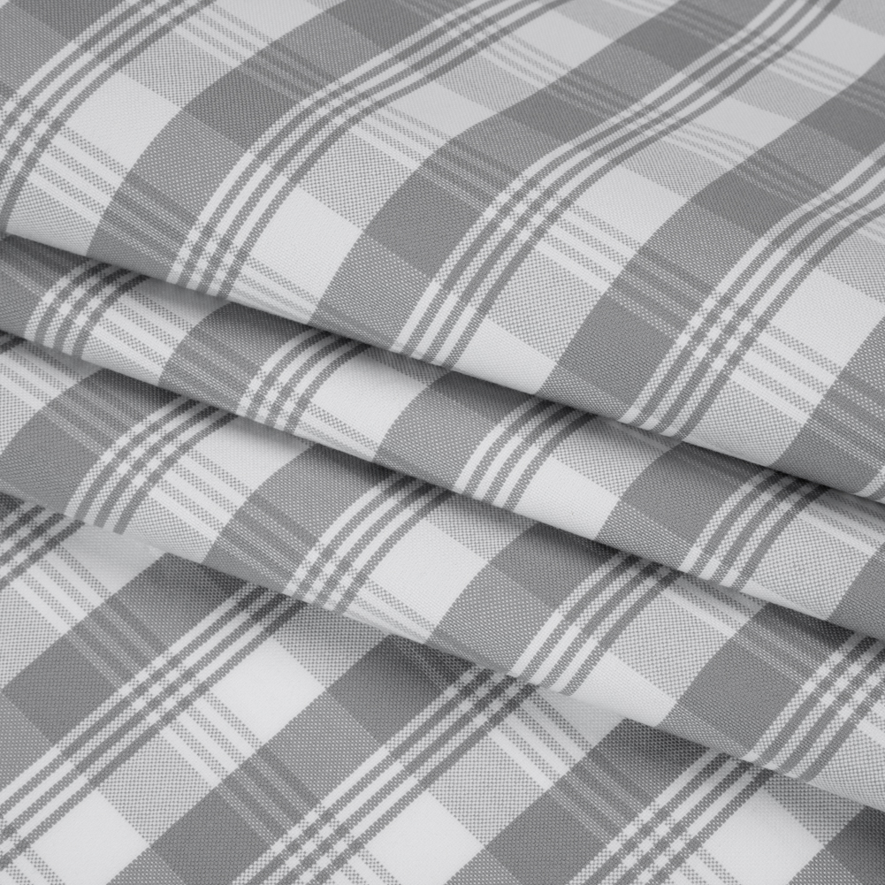 For pieces that never go out of style use this monochrome Plaid Cotton Oxford Shirting—featuring a lightly tactile hand and slightly structured drape.Suggested Projects: Button-Ups, Pants, Shorts, DressesContent: CottonStretch: NoneOpacity: Mostly OpaqueGray and white threads weave a lively plaid pattern across this shirting, striking the perfect balance between simple and stylish. Thanks to its Oxford construction it boasts a slightly tactile hand and a slightly structured drape—ready to accompany you anywhere you go, whether it’s to work or to bed! With its incredibly comfortable nature, we envision lightweight pajama sets for lounging around the house, blazers with matching trousers to wear into the office, shirt dresses for an afternoon coffee date, and more! Mostly opaque, a lining can be added to increase opacity and structure.
