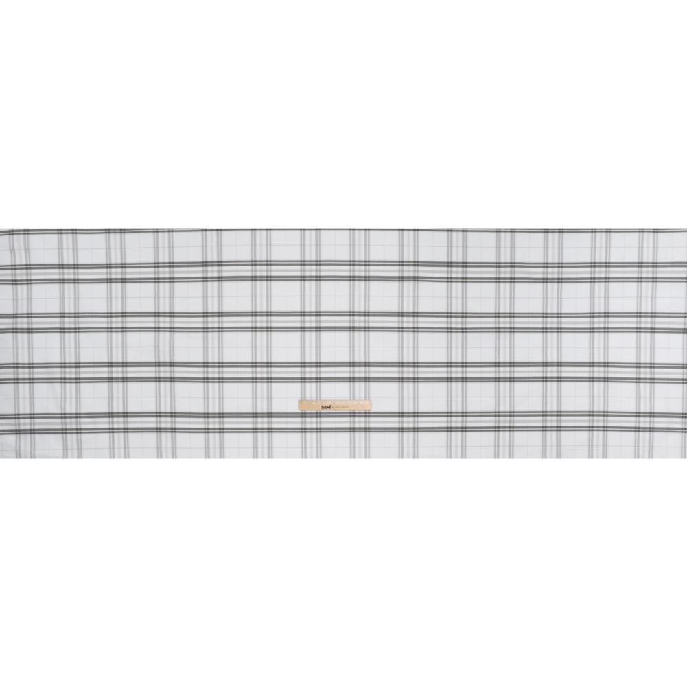 Draw your dream designs out of this Greige, Charcoal and White Plaid Cotton Oxford Shirting—featuring a lightly tactile hand and slightly structured drape.