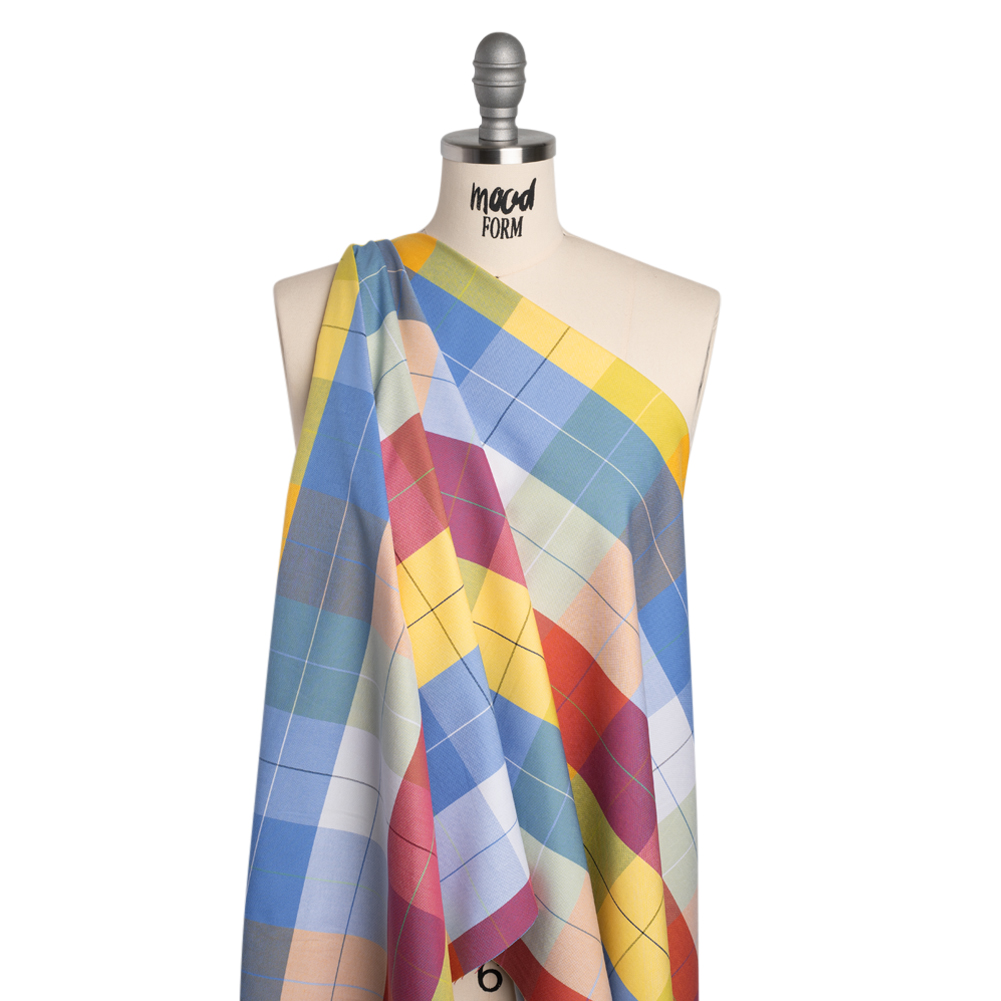 You don’t need a pot of gold when you have this Rainbow Plaid Checked Cotton Oxford Shirting—featuring a soft, slightly tactile hand and crisp drape.Suggested Projects: Button-Ups, Pants, Shorts, DressesContent: CottonStretch: NoneOpacity: OpaqueAdd a kaleidoscope of color to your wardrobe with this rainbow plaid checked shirting. Thanks to its Oxford construction it boasts a soft, slightly tactile hand and crisp drape—ready to accompany you anywhere you go, whether it’s to work or to bed! With its incredibly comfortable nature, we envision lightweight pajama sets for lounging around the house, button-downs to wear into the office, shirt dresses for an afternoon coffee date, and more! Opaque, a lining is not necessary but may be added to to increase structure.