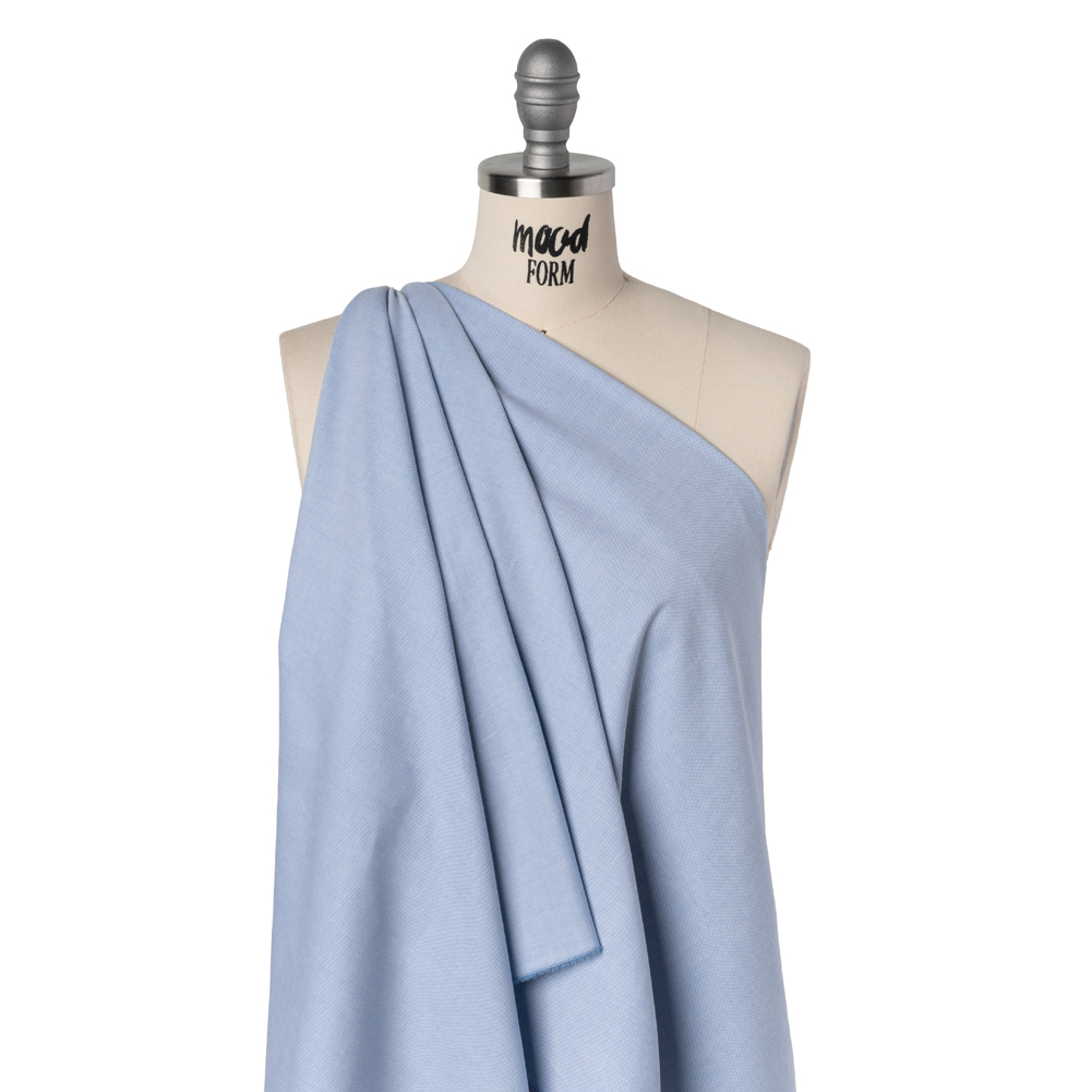 Enjoy the early spring air in this Sky Blue and White Cotton Oxford Shirting—featuring a slightly tactile hand and crisp, slightly structured drape.Suggested Projects: Button-Ups, Pants, Shorts, DressesContent: CottonStretch: NoneOpacity: Mostly OpaqueElevate your workwear with the airy elegance of this sky blue and white shirting. Thanks to its Oxford construction it boasts a slightly tactile hand and crisp, slightly structured drape—ready to accompany you anywhere you go, whether it’s to work or to bed! With its incredibly comfortable nature, we envision lightweight pajama sets for lounging around the house, button-downs to wear into the office, shirt dresses for an afternoon coffee date, and more! Mostly opaque, a lining can be added to increase structure.