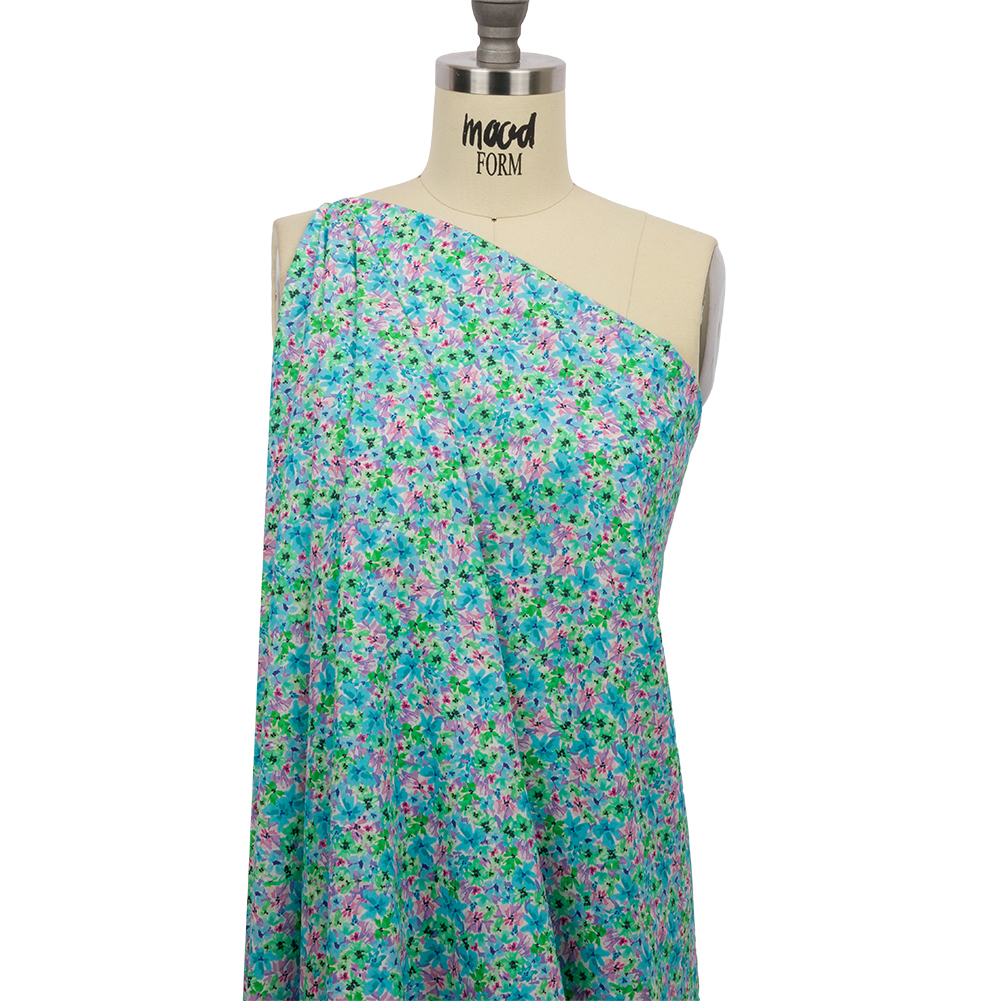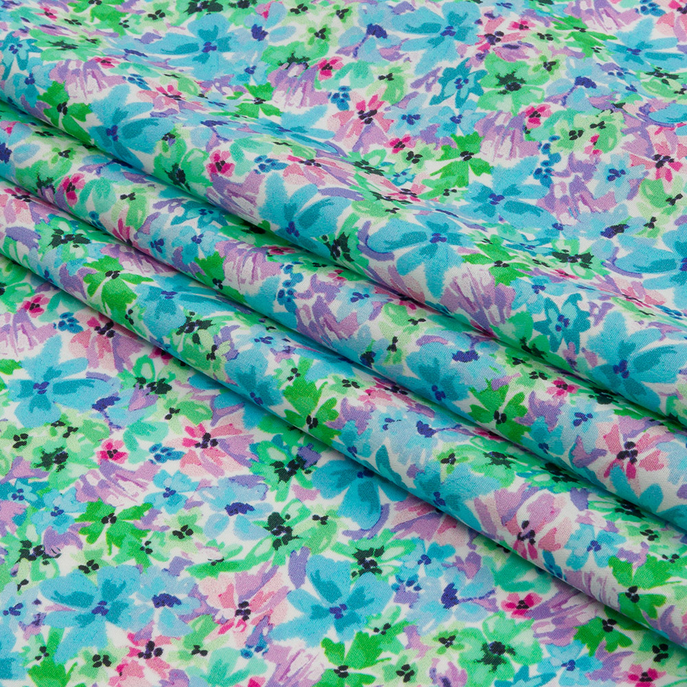 Lush landscapes, drenched in vibrant gardens, color the Isola Bella. Our Mood Exclusive Blue Isola Bella Cotton Poplin displays the beauty of this Italian island in watercolor flowers of blue, green, pink, and purple hues. Cotton poplin, a perfect warm-weather fabric, has a crisp, cool hand and a structured feel. With wrinkle-resistant properties, it is great for blouses, button-up shirts, shirts, and dresses. Slightly translucent, a lining may be necessary where full opacity is desired.Explore Mood’s flower shop: The Secret Garden Collection is an aromatic assembly of bouquets and fields and gardens, sprawling with life and buzzing with color. Get picking!
