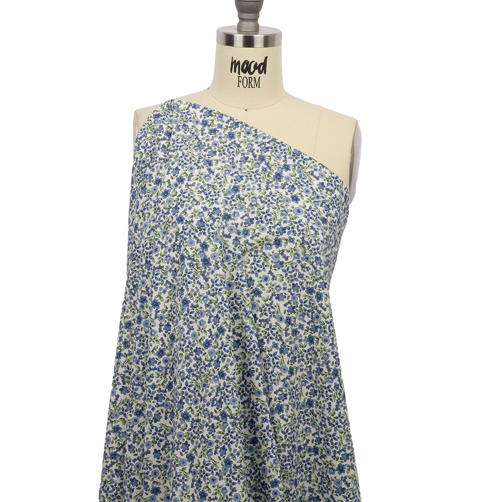 Ivy crawls up the side of the worn cottage as you pad through the garden path—book in arm, tea in hand. Our Blue Botanical Stroll Cotton Poplin is a whimsical delight, evoking the serene solitude of a secluded garden. Cotton poplin, a perfect warm-weather fabric, has a crisp, cool hand and a structured feel. With wrinkle-resistant properties, it is great for blouses, button-up shirts, shirts, and dresses. Slightly translucent, a lining may be necessary where full opacity is desired.Explore Mood’s flower shop: The Secret Garden Collection is an aromatic assembly of bouquets and fields and gardens, sprawling with life and buzzing with color. Get picking!