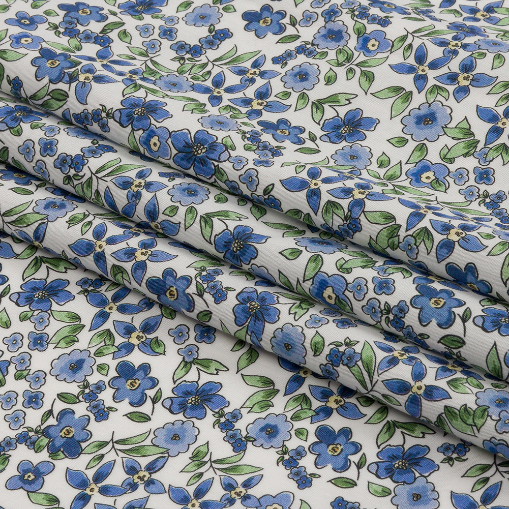 Cotton Poplin - Blue Floral - Botanical Stroll Print - Mood Exclusive Secret Garden Collection