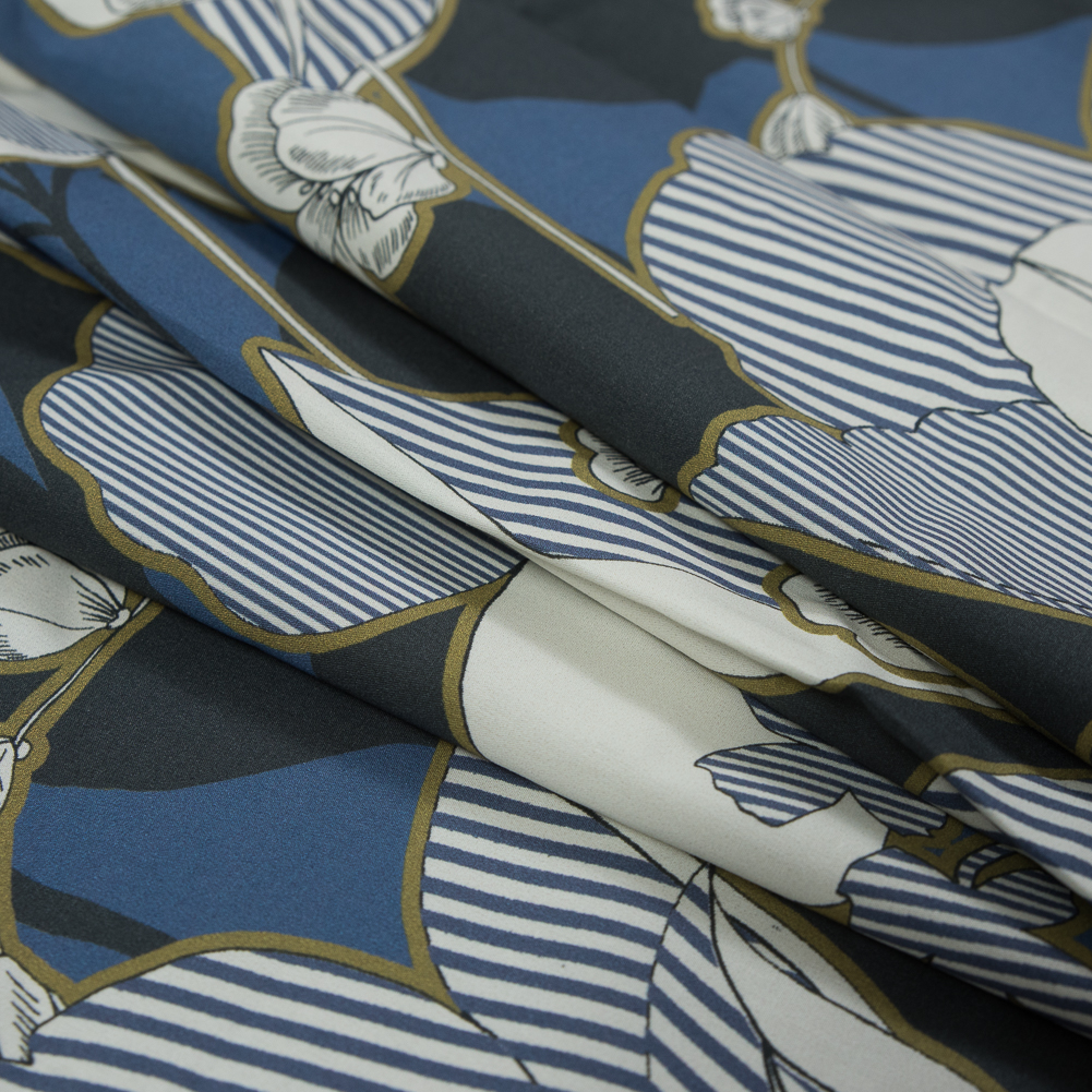 Cotton Poplin - Blue Striped Flowers - Fleurs en Bleu Print - Mood Exclusive Avenable Collection