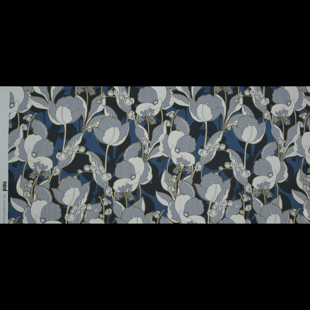 Earn your stripes with this Mood Exclusive Fleurs en Bleu Cotton Poplin! Our Fleurs en Bleu print, which translates to Flowers in Blue, stems from the vivid blue coloration outlining a striped floral print. A slightly crisp hand, paired with a billowy drape make it ideal for flare-legged pants, wrap dresses, or airy button-downs! Mostly opaque in nature, a lining is not necessary but may be used for additional structure or modesty if so desired.
