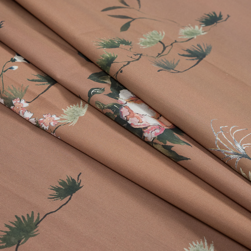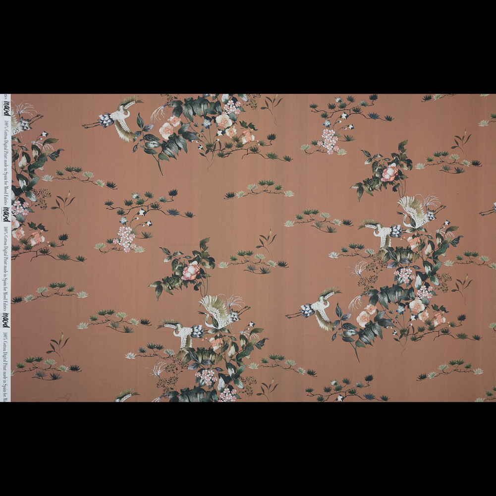 Like an ancient Chinese painting hung up in a museum for all to see, turn this Mood Exclusive La Grande Tournee Caramel Cotton Poplin into a stunning piece of art all your own! Cranes gracefully fly over flowers and vines in a realistically illustrated design. Entitled La Grande Tournee, which translates to "The Grand Tour", this fabric refers to a traditional coming of age trip that young European men and women would take, symbolizing their coming of age; this fabric blends French aesthetic with Asian overtones, much like the French men and women who toured Asia in their youth. Our exclusive poplins were made and digitally printed in Spain to ensure only the highest of quality. Smooth and crisp, it has a flexible drape making it as versatile as it is stunning. Create flared dresses, ruffled tops and menswear button-ups to add a serene sense of style to your collection. Thin and lightweight, it is made with 100% cotton allowing it to breathe and keep you comfortable throughout the day. Slightly translucent, a lining may be desired in some applications.MoodEarth Verified: BCI, or Better Cotton Initiative, focuses on the exchange of good practices, including economic, environmental, and social concerns, in the production of cotton. For more information on Mood's sustainability initiatives, check out MoodEarth here.