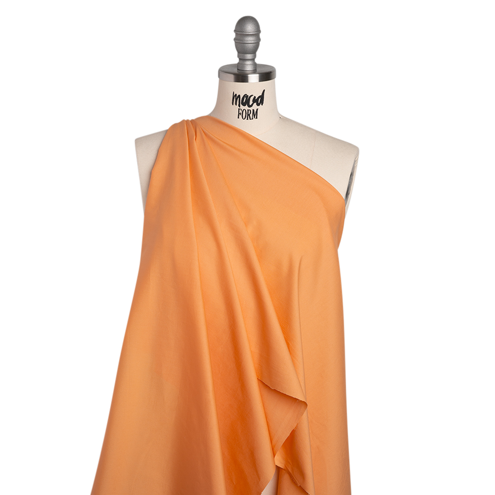 Cut yourself a juicy slice of this Light Mango Orange Cotton Poplin. With a crisp, cool hand and fluttering drape, it’s perfect for lightweight summer styles.Suggested Projects: Blouses, Shirts, Dresses, SkirtsContent: CottonStretch: 20% WeftwiseOpacity: Slightly TranslucentEvery stitch drips with golden sweetness—this cotton poplin infuses your projects with the lush, sun-kissed flavor of ripe mangoes. Crisp and cool in hand, this poplin features a fluttering drape. Boasting a slight stretch through the weft, easily craft pieces that encourage you to get outside and into nature. We envision expertly tailored shirts and blouses, easy shirt dresses, lightweight skirts, and more. As it is slightly translucent, a lining is recommended for a polished finish and opacity.