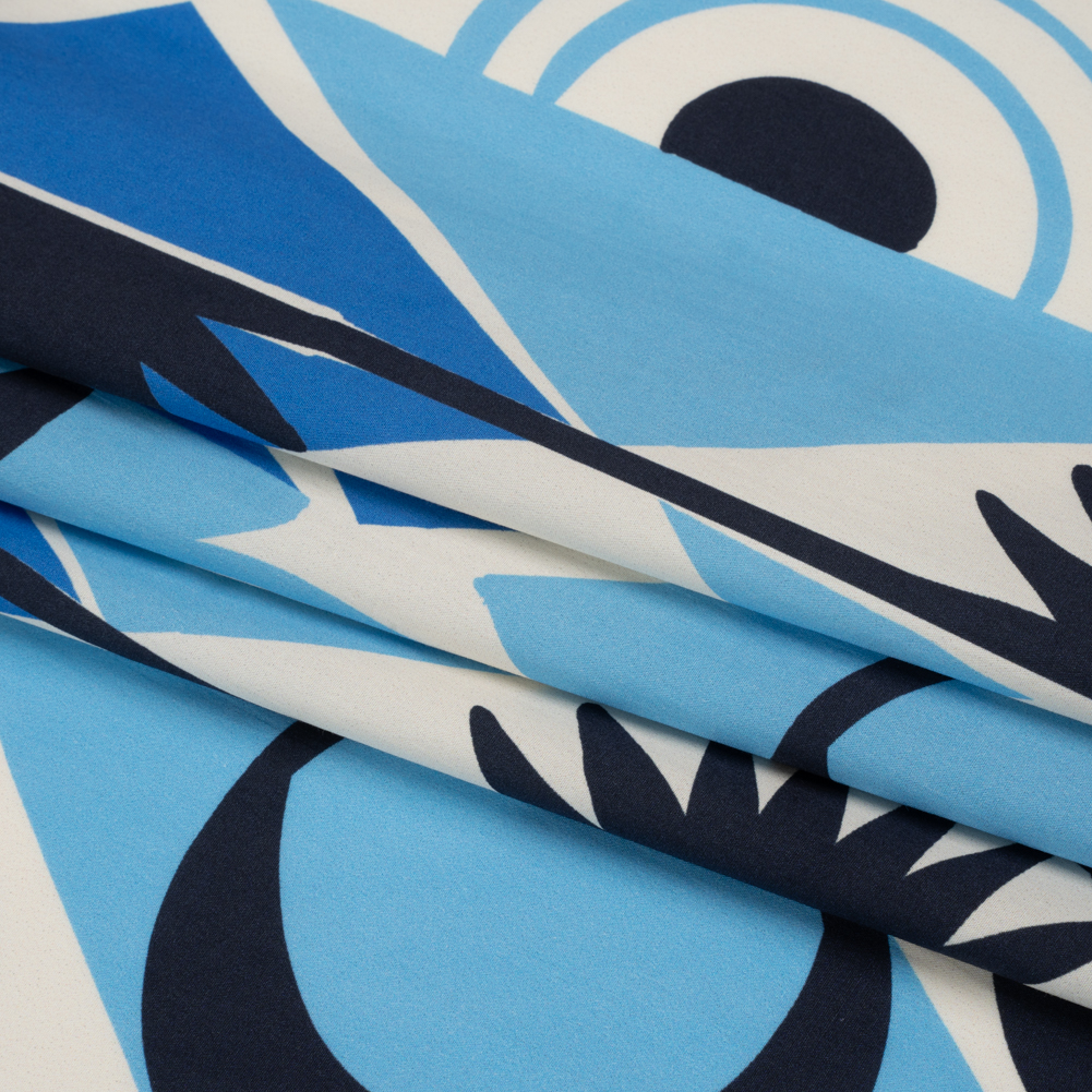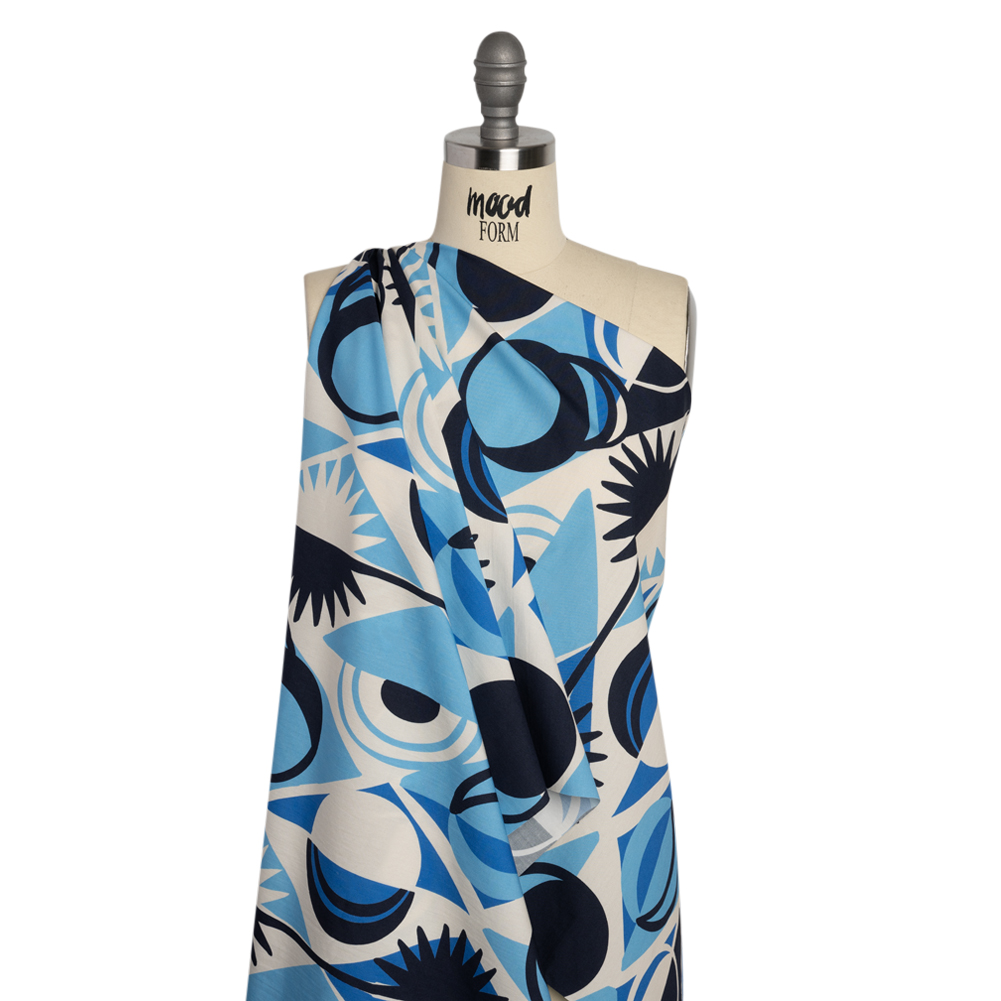 Cotton Poplin Print - Blue Geometric Suns and Circles - Mood Exclusive Twinkle Twinkle