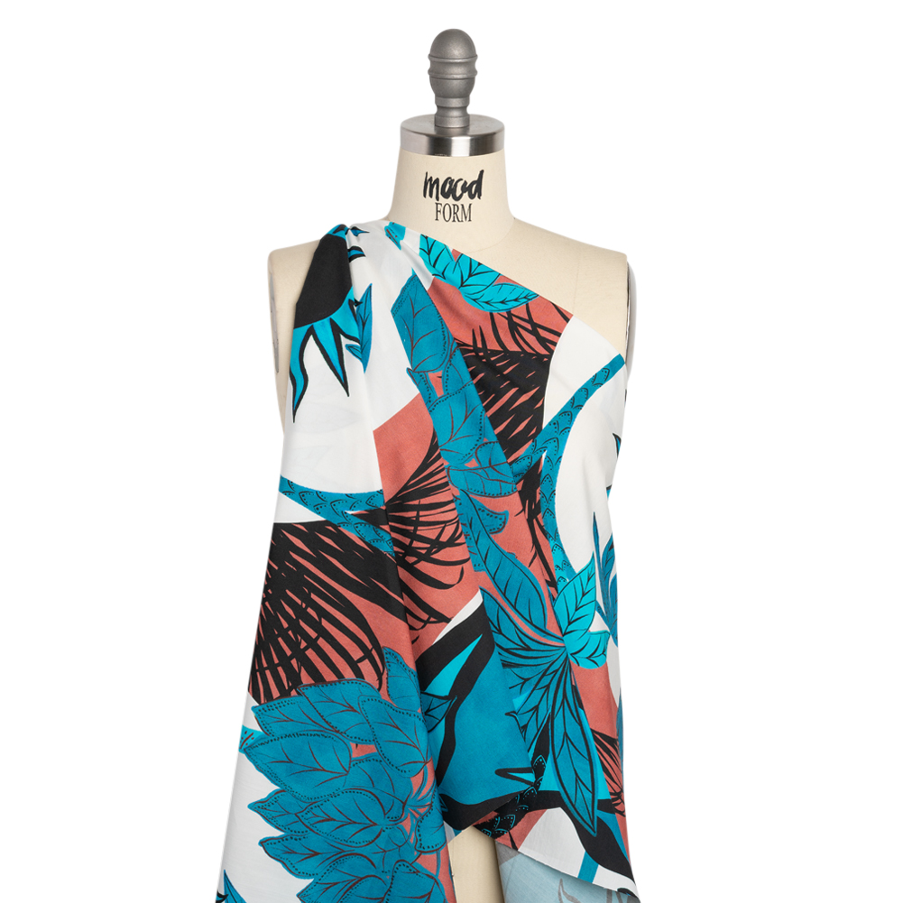 As the moon and sun switch places in the sky, you follow suit by shaking off the drowsy dawn on our Mood Exclusive Blue Sun Salutation Cotton Poplin. Stretch like the tall trees, bend like the palm leaves, and breathe in the humid air that lays like a blanket over the blue and brown landscape—ahhh. You are ready to start your day in paradise!We’ve never met a cotton poplin we don’t love! Your will wardrobes agree: poplin is a staple in most closets as its dry hand and malleable drape create quality garments for every age, gender, and social event. The lightweight and cool feel is ideal for shirting; boxy cropped tops, button-ups, and shirt dresses are just the beginning of what you can create with this fabric! As it is semi-translucent, a lining may be desired.