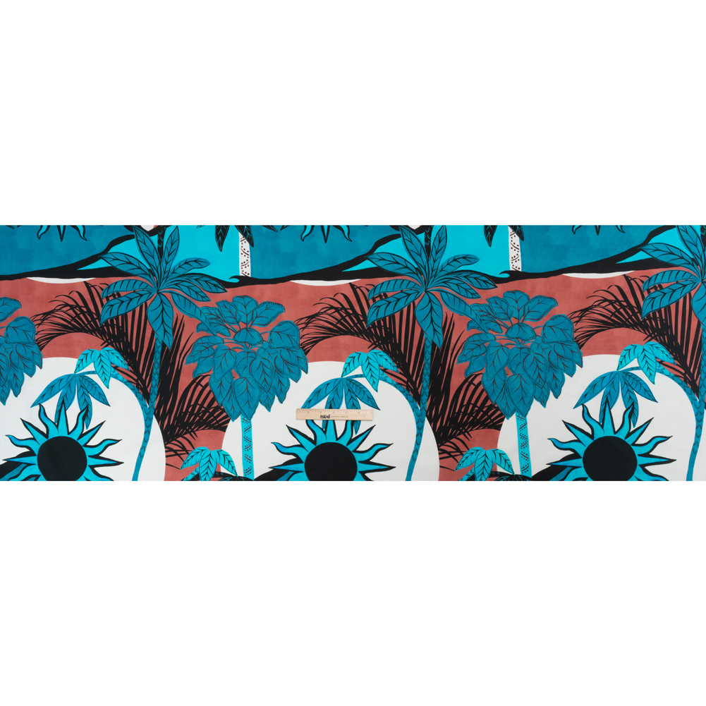 Cotton Poplin Print - Blue Suns and Palm Trees - Mood Exclusive Sun Salutation
