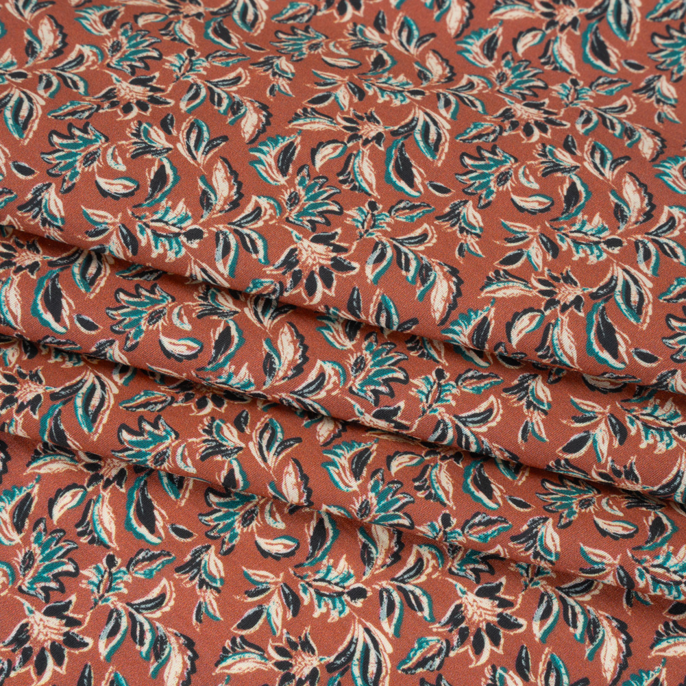 Cotton Poplin Print - Burnt Orange and Teal Leaves - Mood Exclusive Cranberry Corral