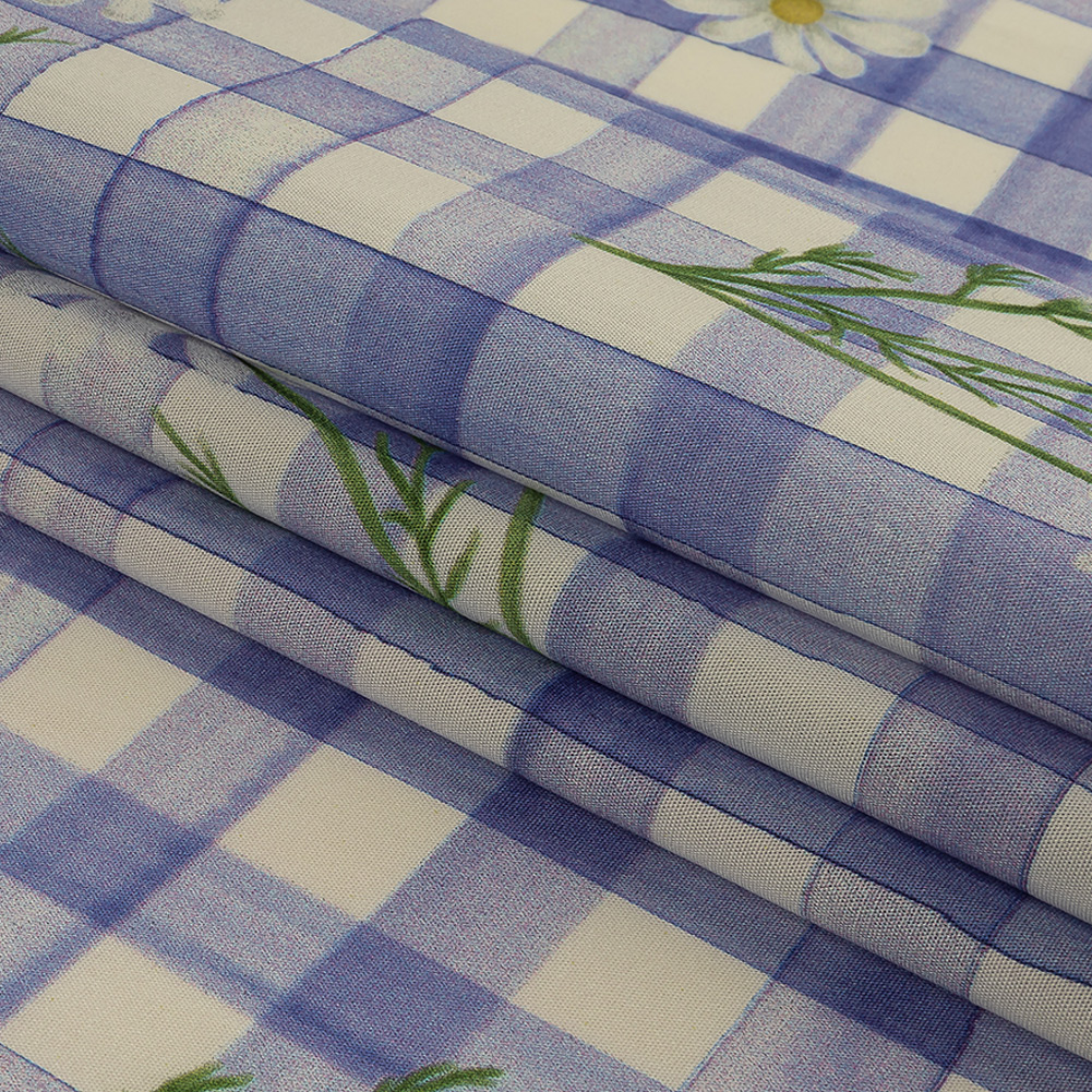 Spend your summers picnicking with friends, creating natural jewelry to match our Mood Exclusive Iolite Daisy Chain Cotton Poplin! As if laid out to create a flower crown, daisies play over a lavender blue and white check. Smooth and cool in hand, this poplin features a light, crisp drape and the slightest mechanical give in the weft. Craft this lightweight fabric into blouses and shirts for everyday or business wear, fashion fluttering dresses and summer skirts, or create casual shorts for the hottest days of summer. Darker colored areas are mostly opaque, while lighter colors may require a lining for some applications due to their translucency.MoodEarth Verified: BCI, or Better Cotton Initiative, focuses on the exchange of good practices, including economic, environmental, and social concerns, in the production of cotton. For more information on Mood's sustainability initiatives, check out MoodEarth here.