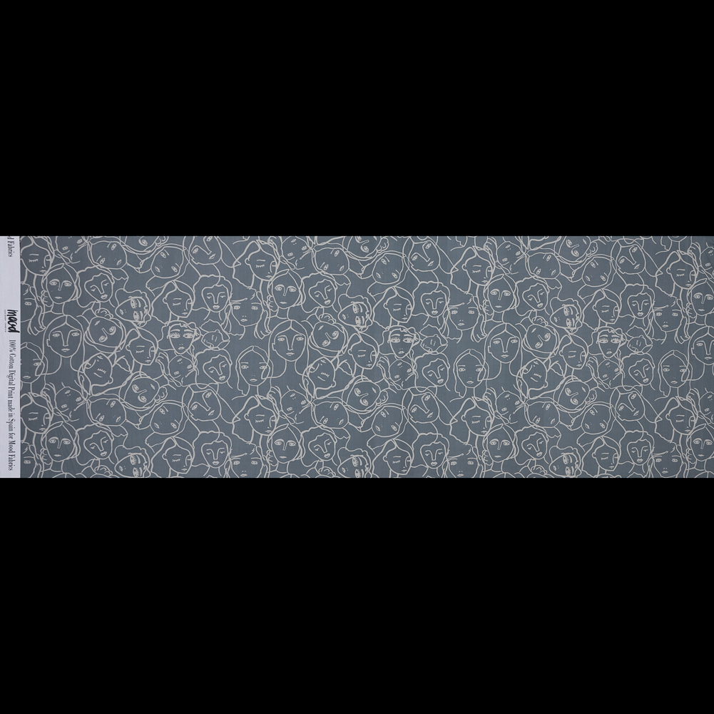 Cotton Poplin - Steel Gray Linework Faces - Un dia en Andorra Print - Mood Exclusive Felipe Collection