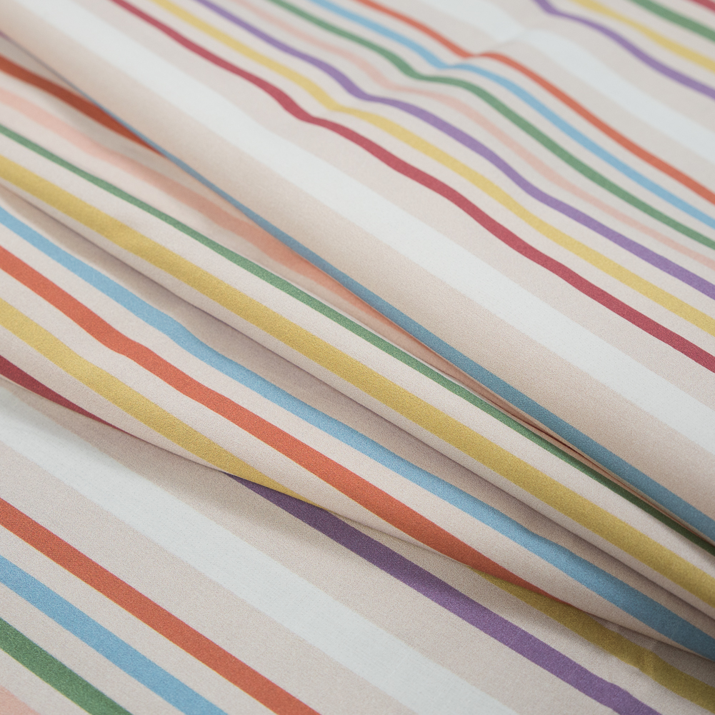 Cotton Poplin - White and Rainbow Stripes - Humileco estas Tenereco Print - Mood Exclusive Avenable Collection