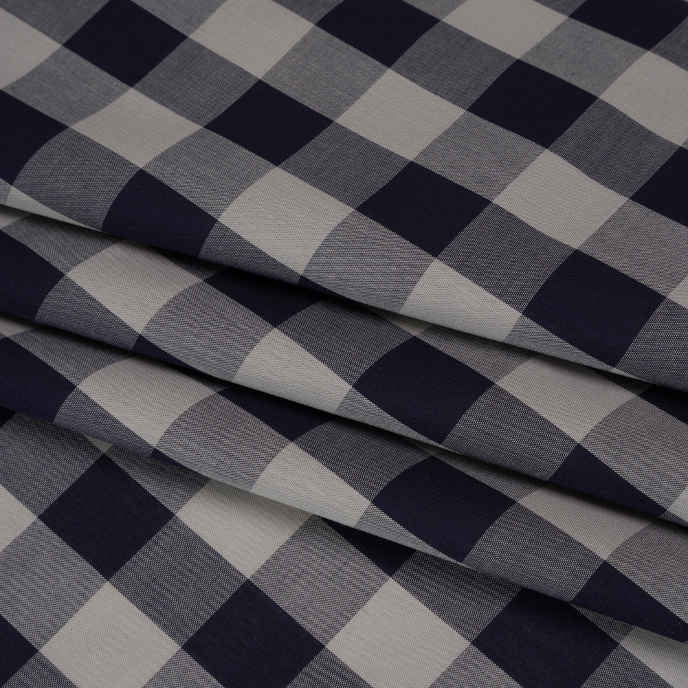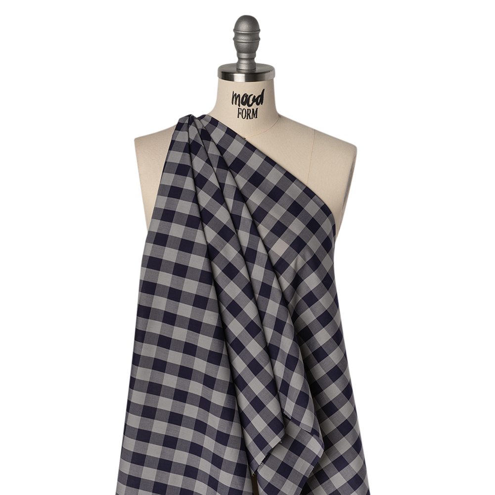 You’ll be blown away by the deep tones of this Gray and Dark Navy Big Checked Cotton Shirting—featuring a smooth, cool hand and crisp drape.Suggested Projects: Shirts, Shorts, Skirts, VestsContent: CottonStretch: NoneOpacity: TranslucentStormy gray and deep navy threads intertwine in a dynamic checked pattern, giving this cotton shirting a moody, sophisticated edge. Lightweight and smooth with a cool hand and crisp drape, it’s perfect for breezy, casual styles—think classic button-downs, pleated skirts, and tailored vests fit for sunny days outdoors. Translucent, a lining can be added for opacity and structure.