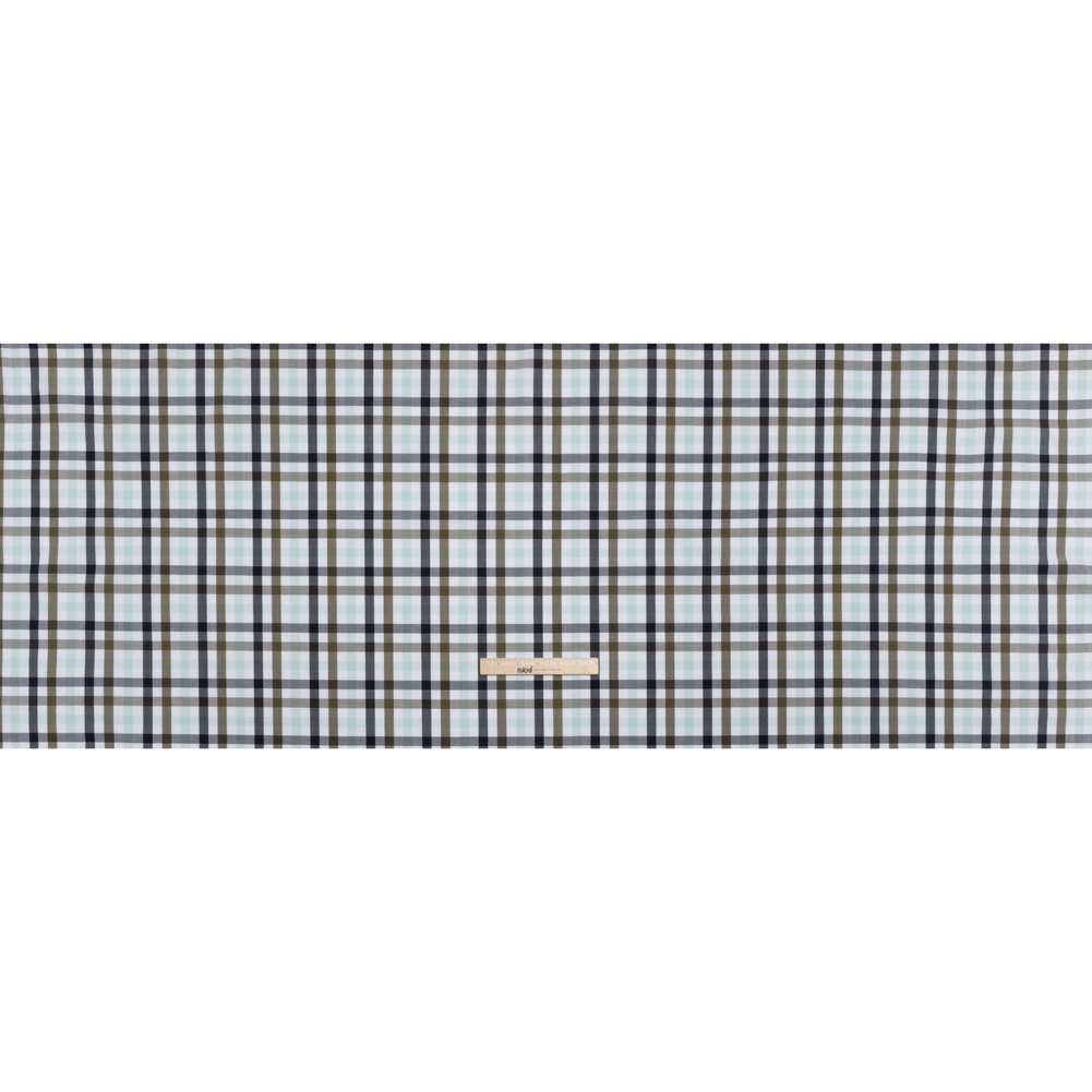 Cotton Shirting – Khaki, Navy and Light Aqua Blue Plaid – Deadstock