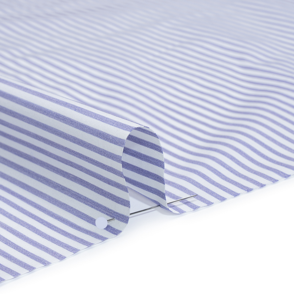 Every stitch of this Light Blue and White Candy Striped Cotton Shirting is a sweet one—featuring a smooth, cool hand and airy drape.