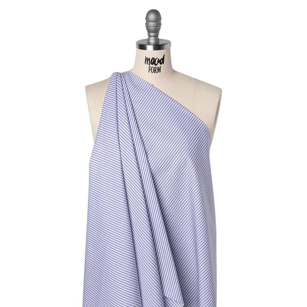 Every stitch of this Light Blue and White Candy Striped Cotton Shirting is a sweet one—featuring a smooth, cool hand and airy drape.Suggested Projects: Shirts, Skirts, Dresses, ShortsContent: 100% CottonStretch: NoneOpacity: Mostly OpaqueLight blue and white candy stripes stitch a truly sweet pattern across this shirting. Delicate and lightweight, this shirting features a smooth, cool hand and airy drape—perfect for casual, breathable styles. From classic button-downs to breezy summer dresses or smart blouses, it moves effortlessly with you through sunny afternoons and busy office days alike. Mostly opaque, a lining is suggested for more opacity and structure.