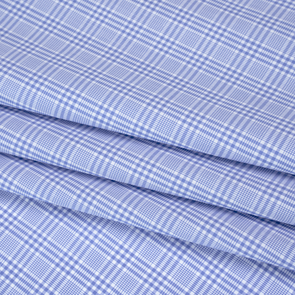 Relaxing days unfurl within the embrace of this Light Blue and White Checked Plaid Cotton Shirting—featuring a smooth, cool hand and crisp drape.Suggested Projects: Shirts, Shorts, Skirts, VestsContent: 100% CottonStretch: NoneOpacity: Slightly TranslucentFrom busy office meetings to sunny picnic afternoons, this light blue and white checked plaid cotton shirting keeps you cool, comfortable, and effortlessly stylish all day long. Lightweight and smooth with a cool hand and crisp drape, it’s perfect for breezy, casual styles—think classic button-downs, pleated skirts, and tailored vests fit for sunny days outdoors. Slightly translucent, a lining can be added for opacity and structure.
