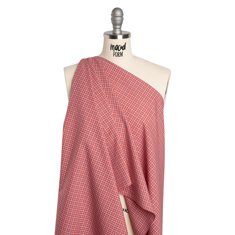 Fall asleep in a field of poppies and dream of sunny summer days in this Check Plaid Cotton Shirting—featuring a cool, smooth hand and crisp drape.Suggested Projects: Button-Downs, Skirts, Shorts, DressesContent: CottonStretch: NoneOpacity: TranslucentRed, navy, and white lines weave together to create a check plaid design—akin to a field of geometric poppy flowers. This fabric has a smooth, cool hand and a crisp drape that inspires casual and breathable styles. Whether it be a classic button down, a short, pleated skirt, or a smart shirt-dress, the plaid design of this shirting lends itself well to long days outside, enjoying the fresh air—or imagining you are from the comfort of your cubicle. Translucent, a lining may be used to increase opacity and structure.