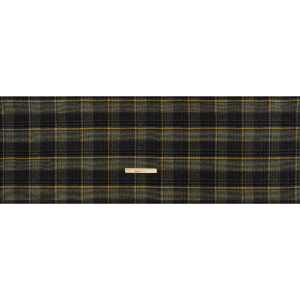 Cotton Twill Flannel - Charcoal, Light Olive and Mustard Yellow Plaid - Deadstock