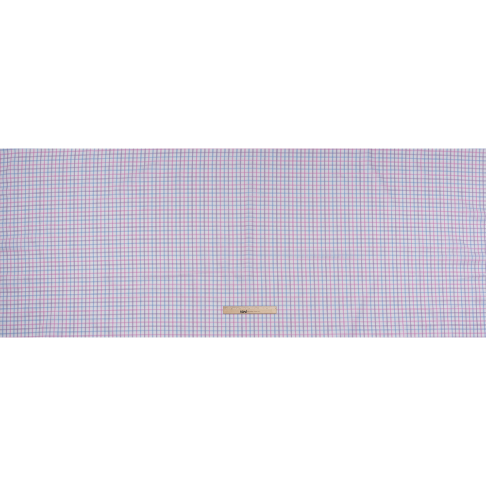 Stitch colorful couture out of this Baby Pink, Lavender and Light Blue Checked Cotton Twill Shirting—featuring a smooth, dry hand and supple drape.Suggested Projects: Shirts, Shorts, Skirts, VestsContent: CottonStretch: NoneOpacity: Slightly TranslucentBaby pink, lavender, and light blue stripes intersect across a crisp white backdrop, forming a playful and colorful check pattern. Woven from soft cotton fibers, this shirting combines breathable comfort with a durable twill weave and a lightweight, supple drape. Ideal for preppy button-downs, chic shirt dresses, statement shorts, or pleated skirts, it adds a touch of playful polish to everyday outfits. Slightly translucent, a lining can be added for extra structure.