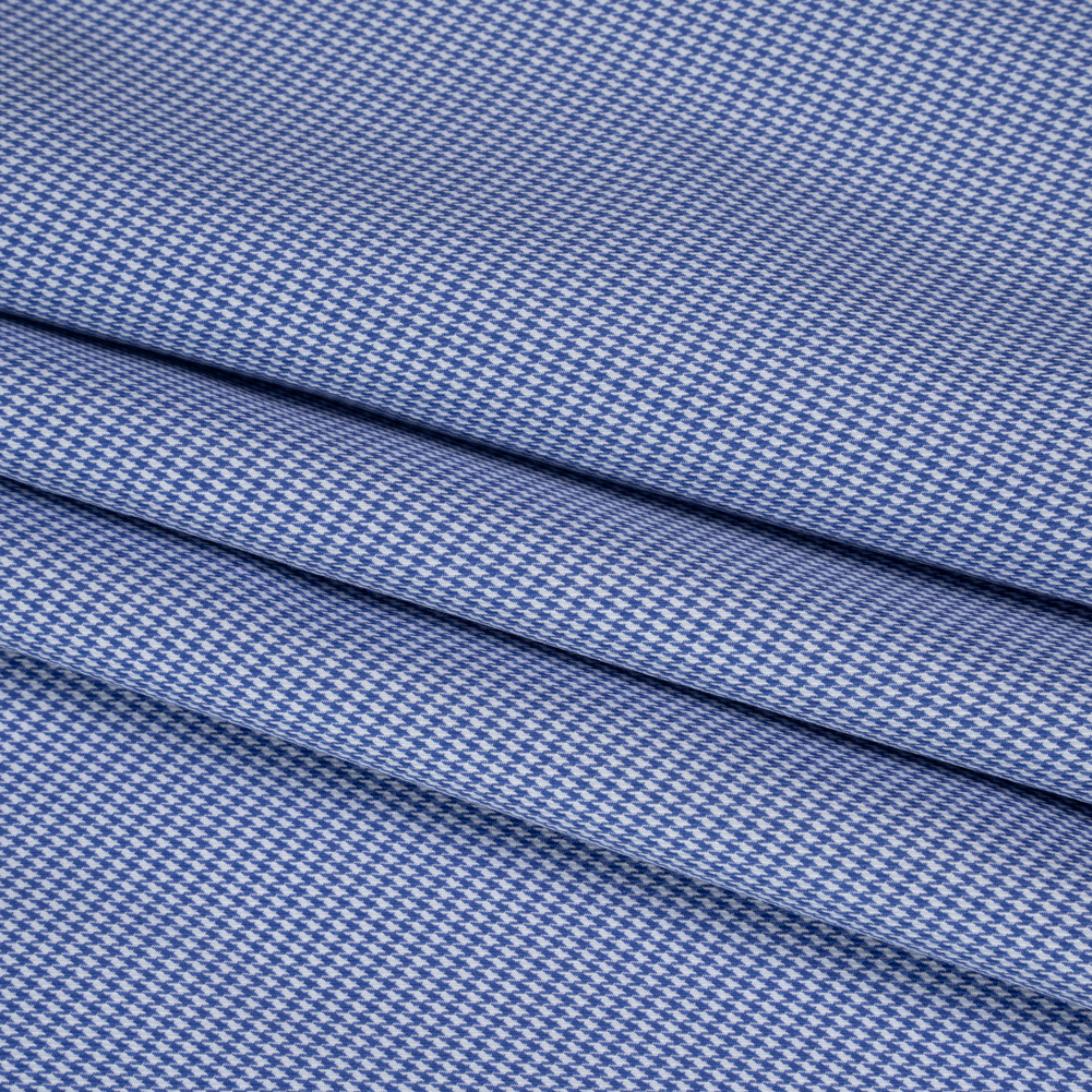 Cotton Twill Shirting - Blue and White Little Houndstooth - Deadstock