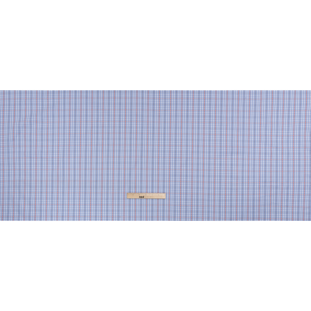 Cotton Twill Shirting - Light Blue, Navy and Red Plaid - Deadstock