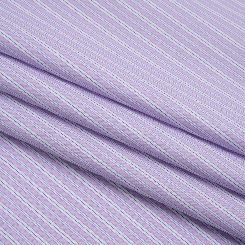 Cotton Twill Shirting Made in Italy – Lavender, White and Navy Stripes – Deadstock