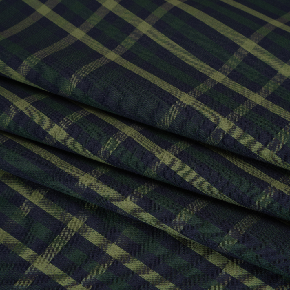 Blend luxury with comfort with this Navy, Emerald and Sage Green Plaid Cotton Twill Shirting—featuring a soft, crisp hand and supple drape.