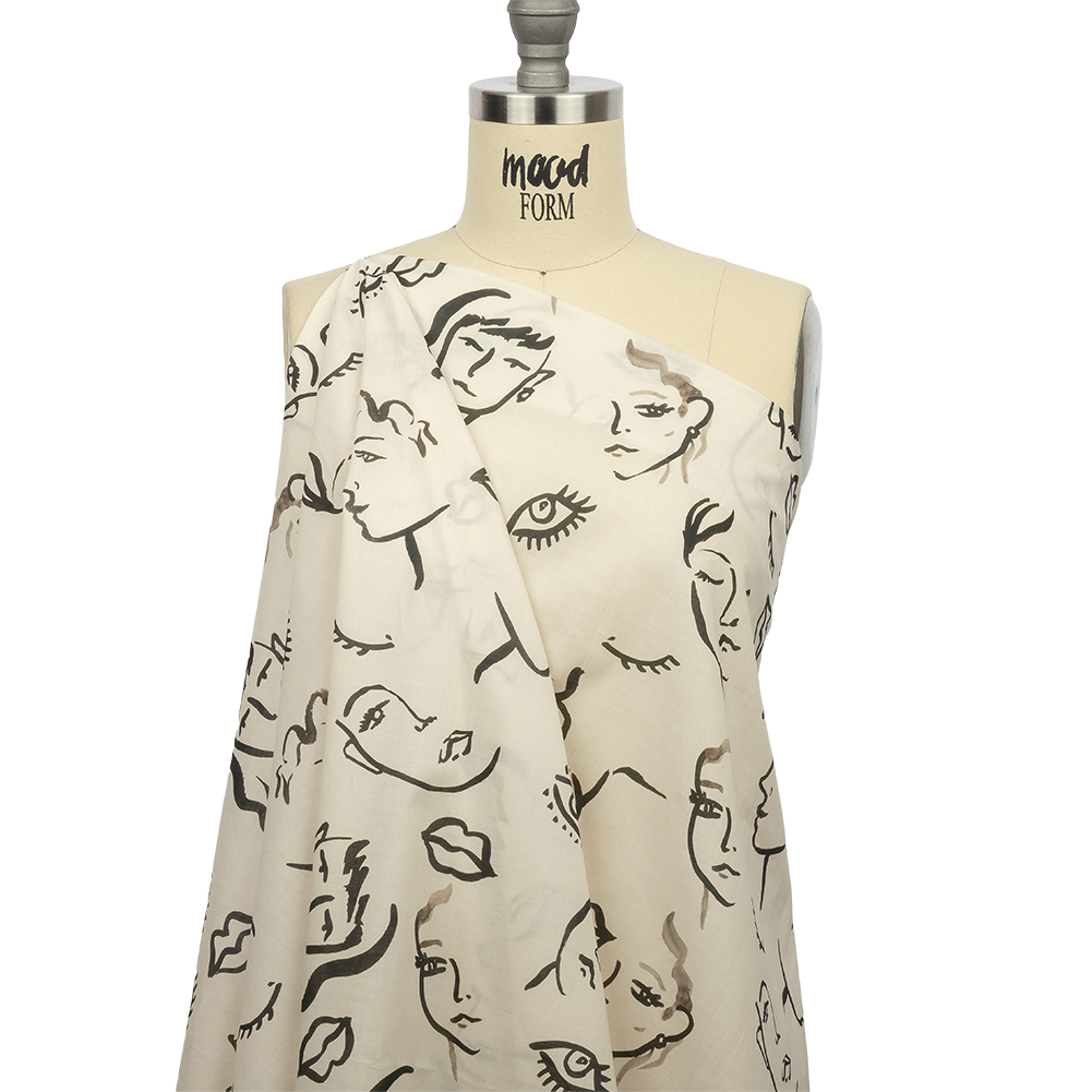 Cotton Voile - Black and White Face Drawings - Everyday Runway Print - Mood Exclusive Metro Collection