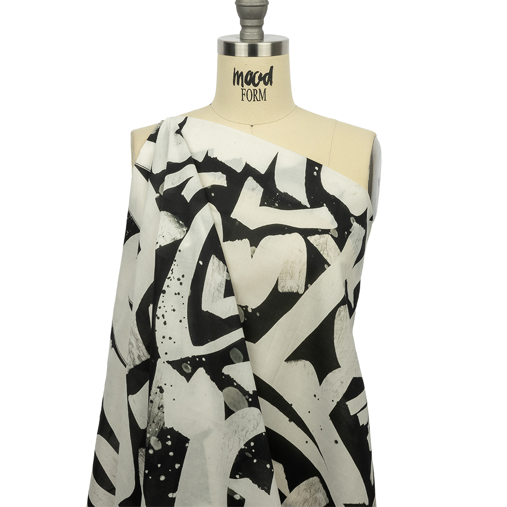 Graffiti takes center stage in a city with so much vibrant art. Claim a chance to add your name to a list of so many stars with our Mood Exclusive Wall of Fame Cotton Voile, featuring bold stylized letters in black and white. Part of The Metro Collection, cotton voile is a sweet, romantic material with a soft, airy hand and a billowing drape. Create shirred blouses, loose-fit sundresses, or whimsical skirts. Highly translucent, a lining may be desired for added structure and modesty depending on its application. Swing by our Mood Sewciety Blog to take a glance at over 300 free sewing patterns for more inspiration. For cotton voile, we recommend the Bridgerton Dress, Wilder Top, and Caraway Blouse.MoodEarth Verified: BCI, or Better Cotton Initiative, focuses on the exchange of good practices, including economic, environmental, and social concerns, in the production of cotton. For more information on Mood's sustainability initiatives, check out MoodEarth here.
