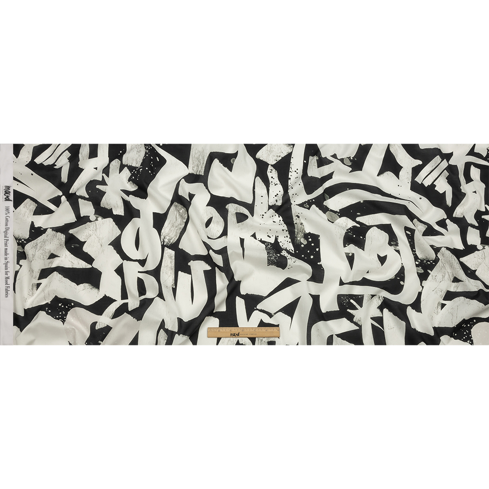 Cotton Voile - Black and White Graffiti Letters - Wall of Fame Print - Mood Exclusive Metro Collection
