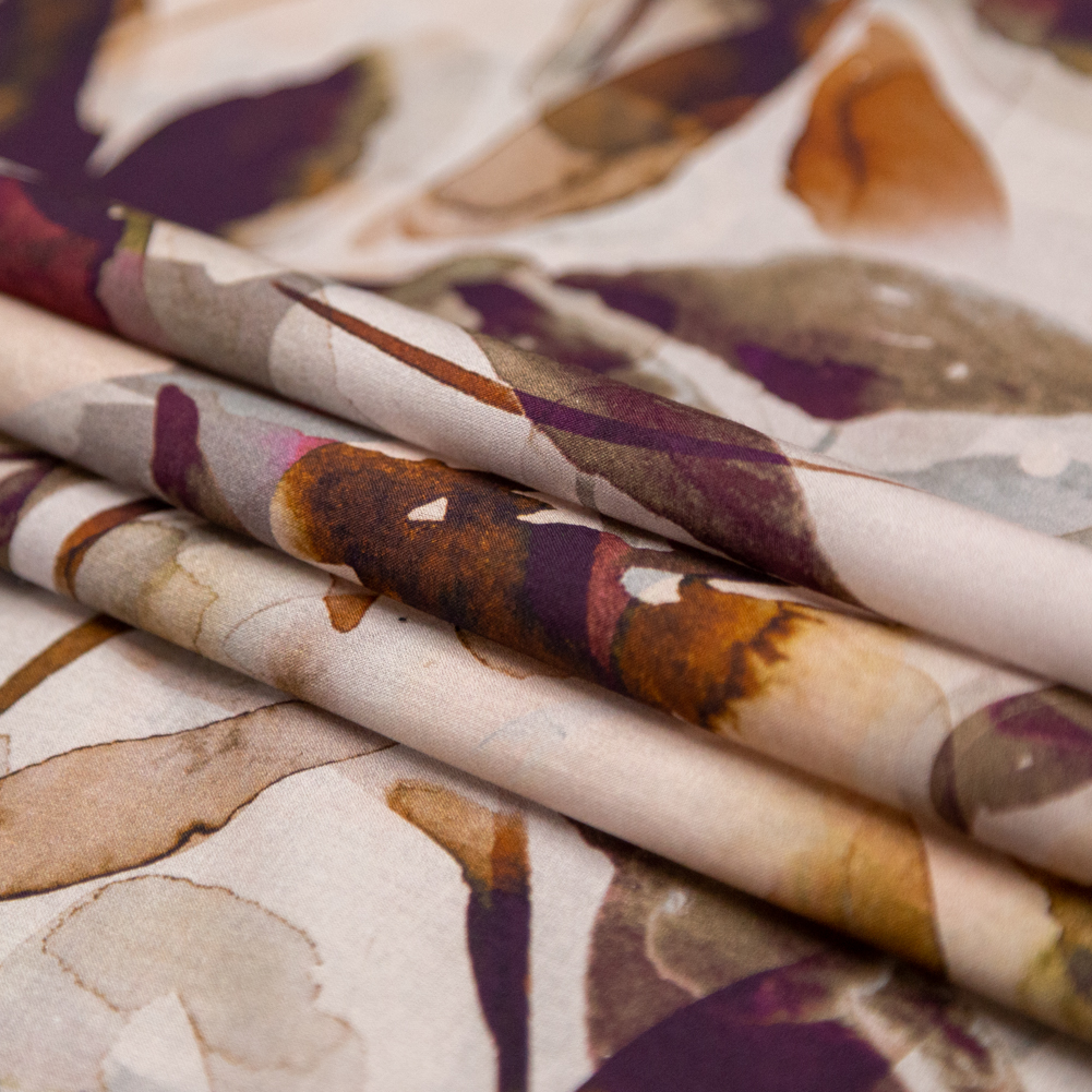 Gauzy Wrinkled Rayon Woven Print - Rust and Mauve Patterned Stripes - Mood Exclusive Strips of Style