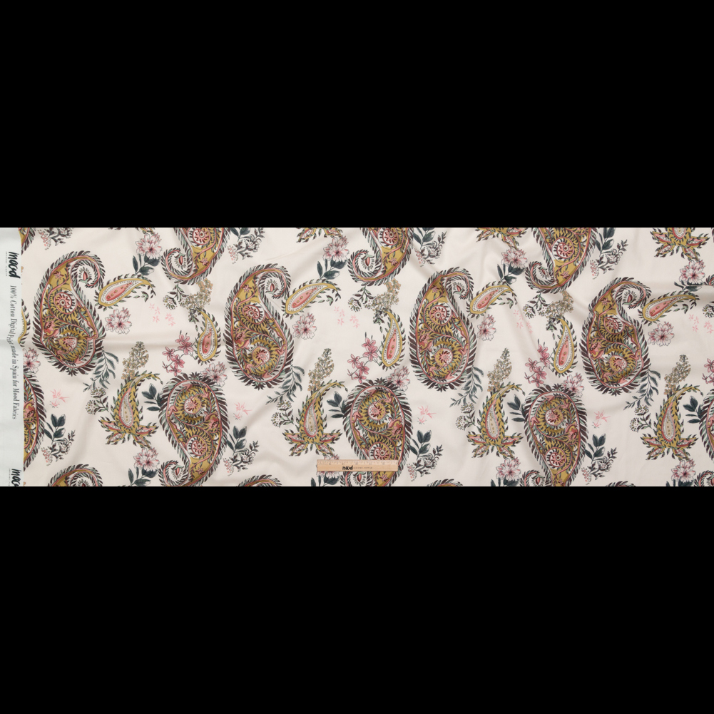 Cotton Voile - Cream Pink Paisleys - Leaving Footmarks Print - Mood Exclusive Kenko Collection