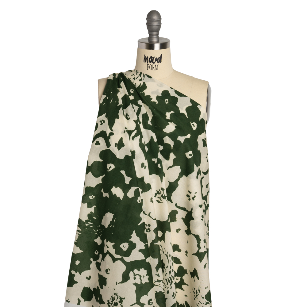 Cotton Voile - Hunter Green and Cream Big Floral - Rorschach Rosettes Print - Mood Exclusive Acadia Collection