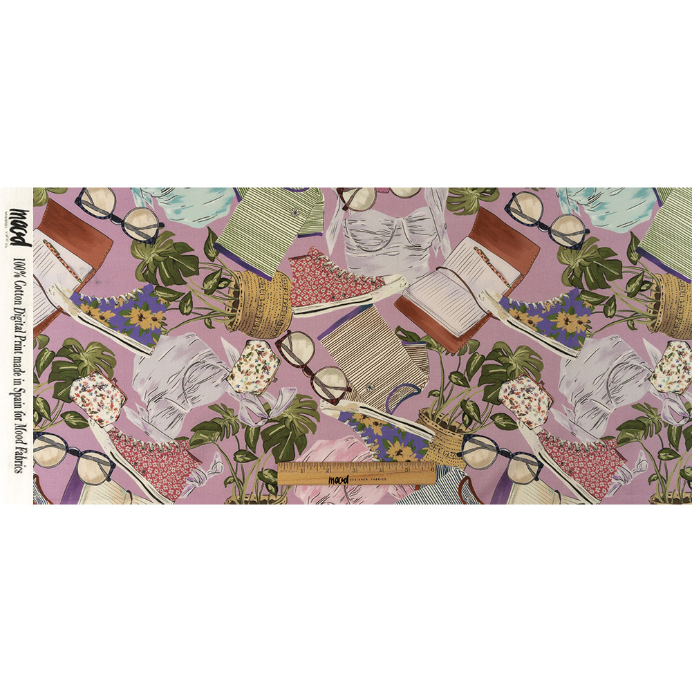 Cotton Voile - Lavender Clothes and Plants - Morning Memory Print - Mood Exclusive Wisteria Collection