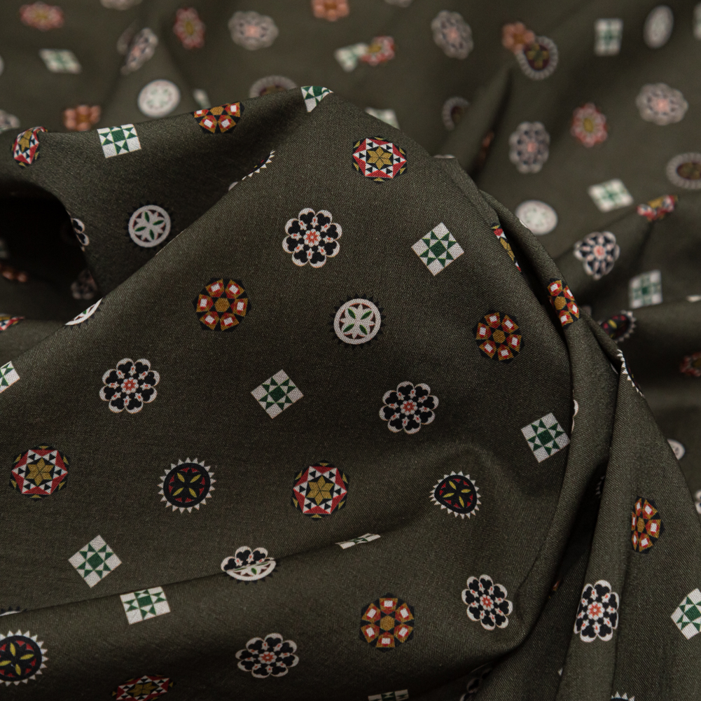 Cotton Voile - Olive Green LIttle Medallions - Emblematic Medallions Print - Mood Exclusive Serengeti Collection