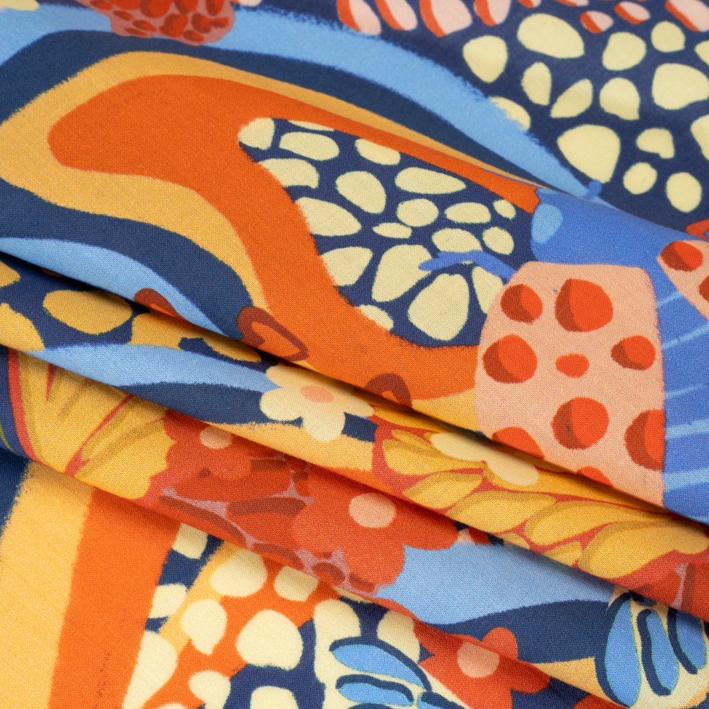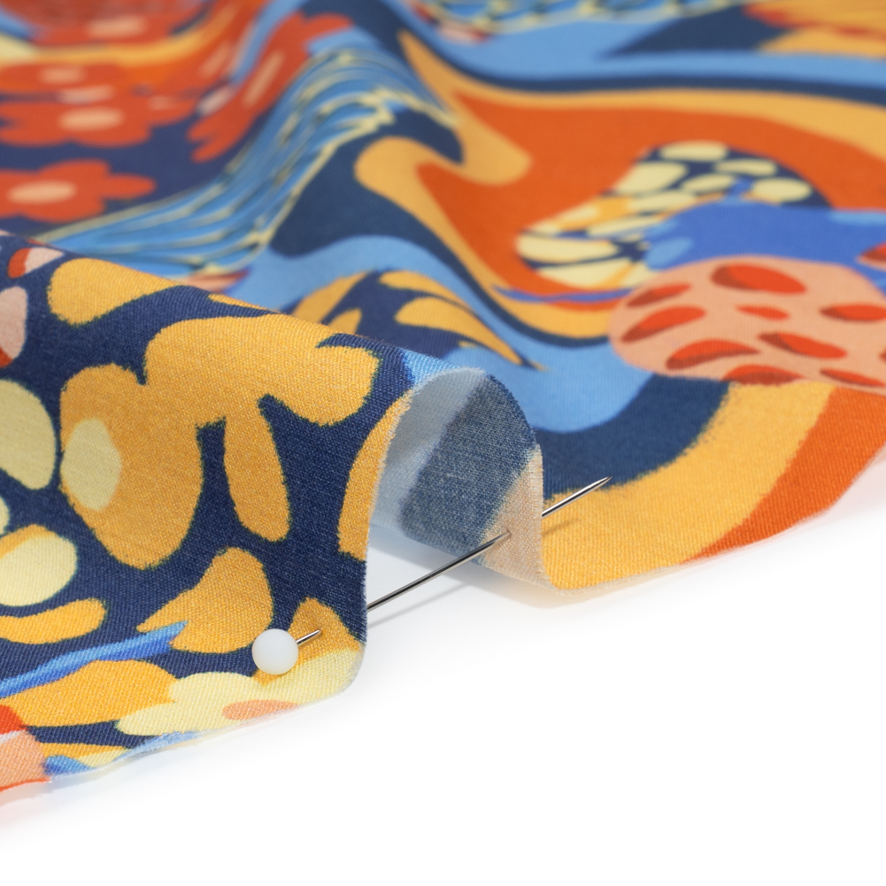 Cotton Voile - Orange and Blue Butterflies and Doodles - Sunbeam Garden Print - Mood Exclusive Chariot Collection