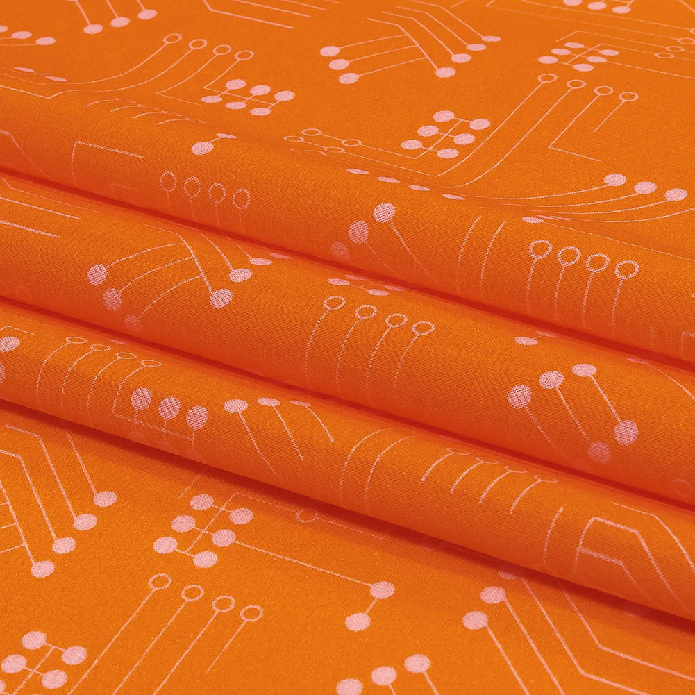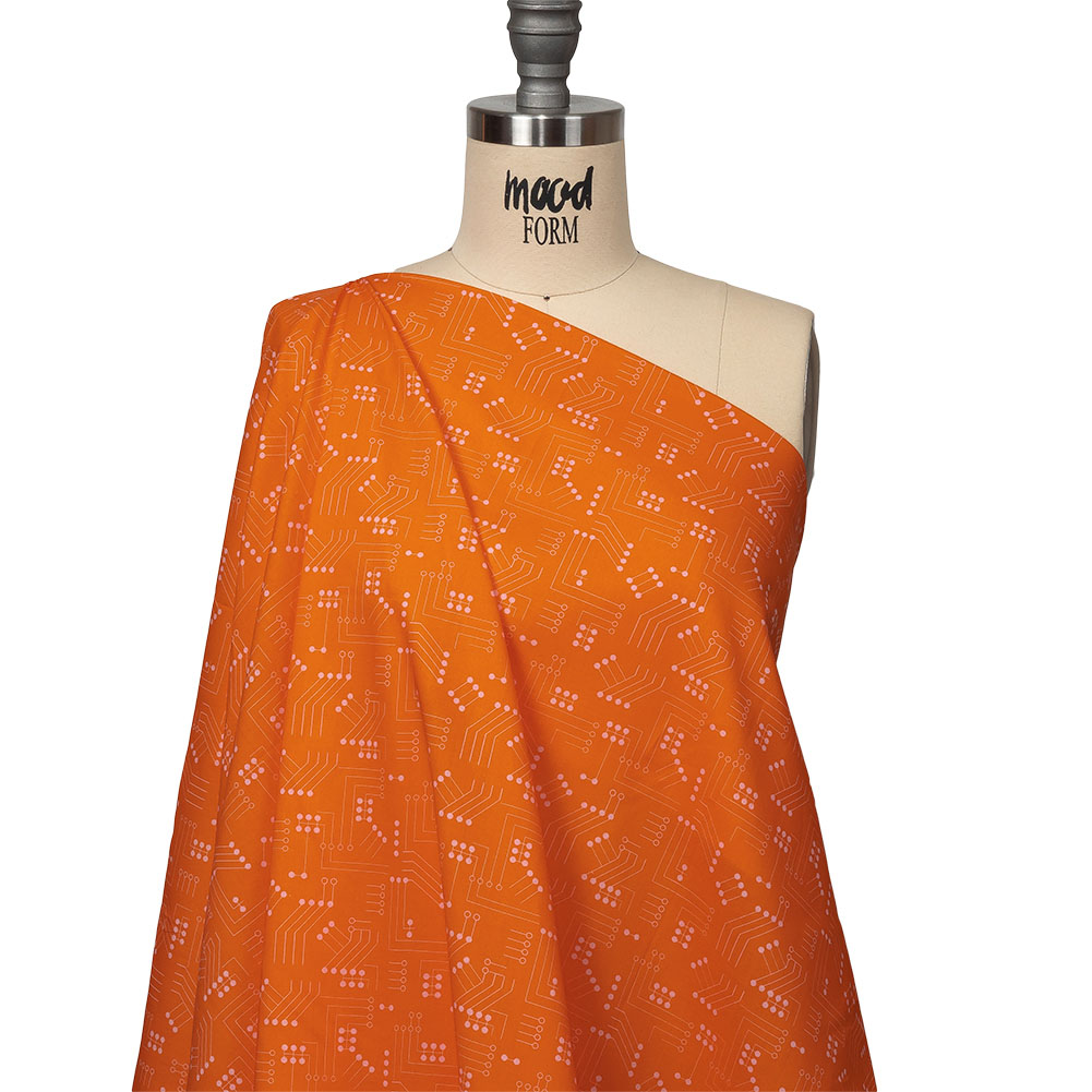 Cotton Voile - Orange Circuit Board Dots - Circuit Breaker Print - Mood Exclusive Citrus Collection