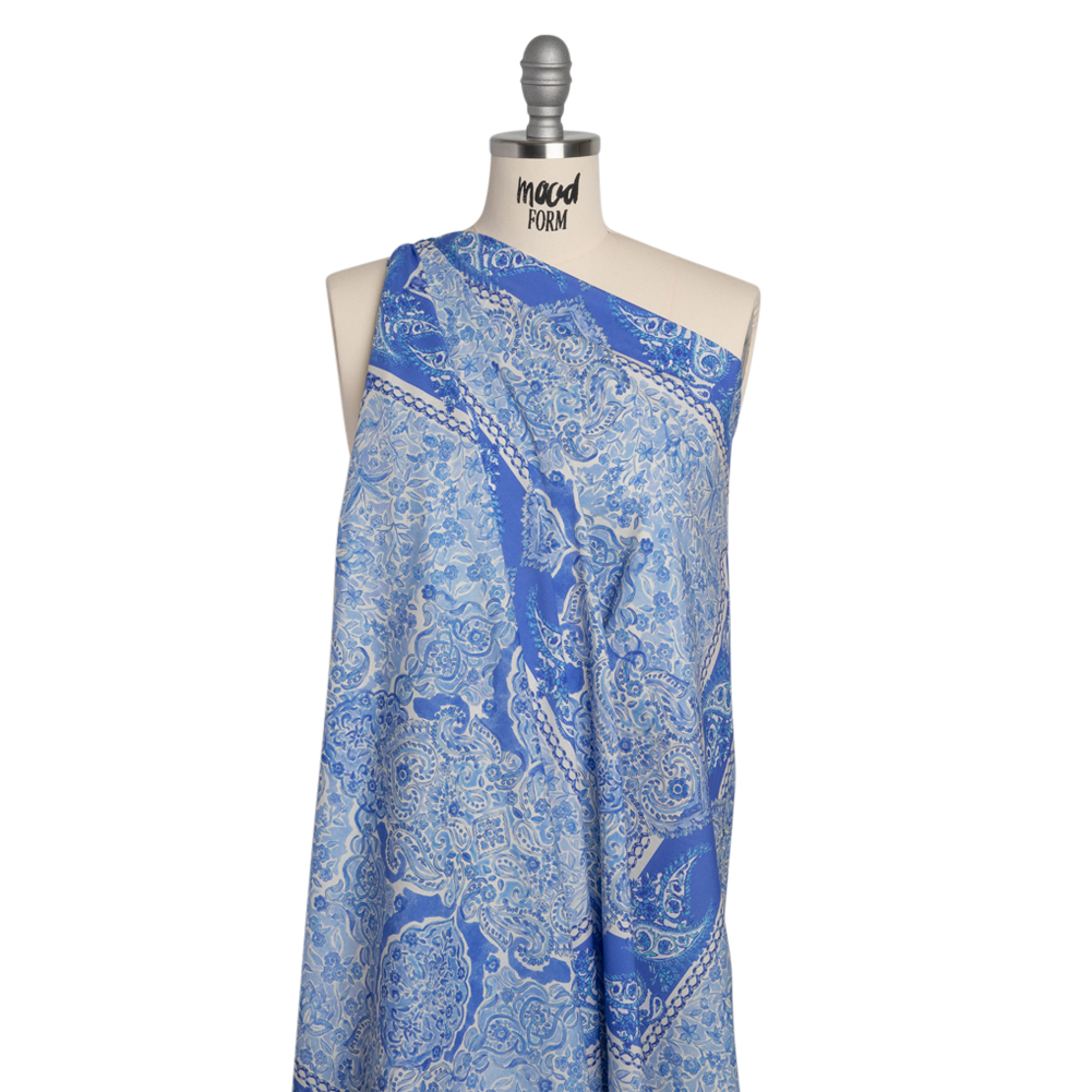 Cotton Voile Panel - Blue Paisley Floral - Sicilian Summer Print - Mood Exclusive Chariot Collection
