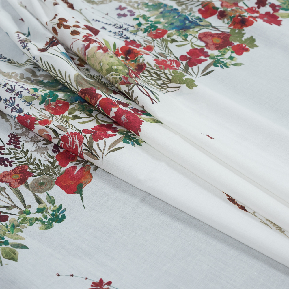 A painterly expression of nature's dazzling view, let us introduce our Mood Exclusive White Cotton Voile Panel. Illustrated wild flowers bloom and float away in vibrant color along a solid backdrop. Entitled Promenade au Pavot, which translates to "the poppy promenade", this print seems to come straight from Parisian paintings of lovers walking along expansive gardens, and children playing in fields of flowers. Created and digitally printed in Spain, our voile features a luxuriously soft hand which carries its lovely design with precision and detail. Add the border print to midi skirts, bishop sleeves on tops and tunics, and the hemlines of dresses. Its drape is light and airy creating delightfully soft silhouettes. Made with 100% cotton, the thin and lightweight woven is as much about comfort as much as it is about style. Translucent, insert a lining for more opacity. Note that the panel measures 23.25" in length.
