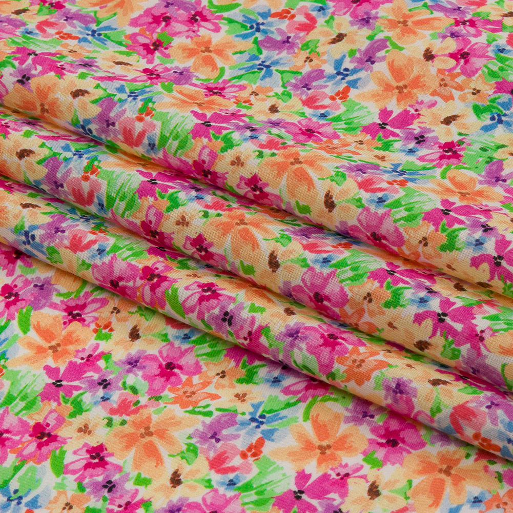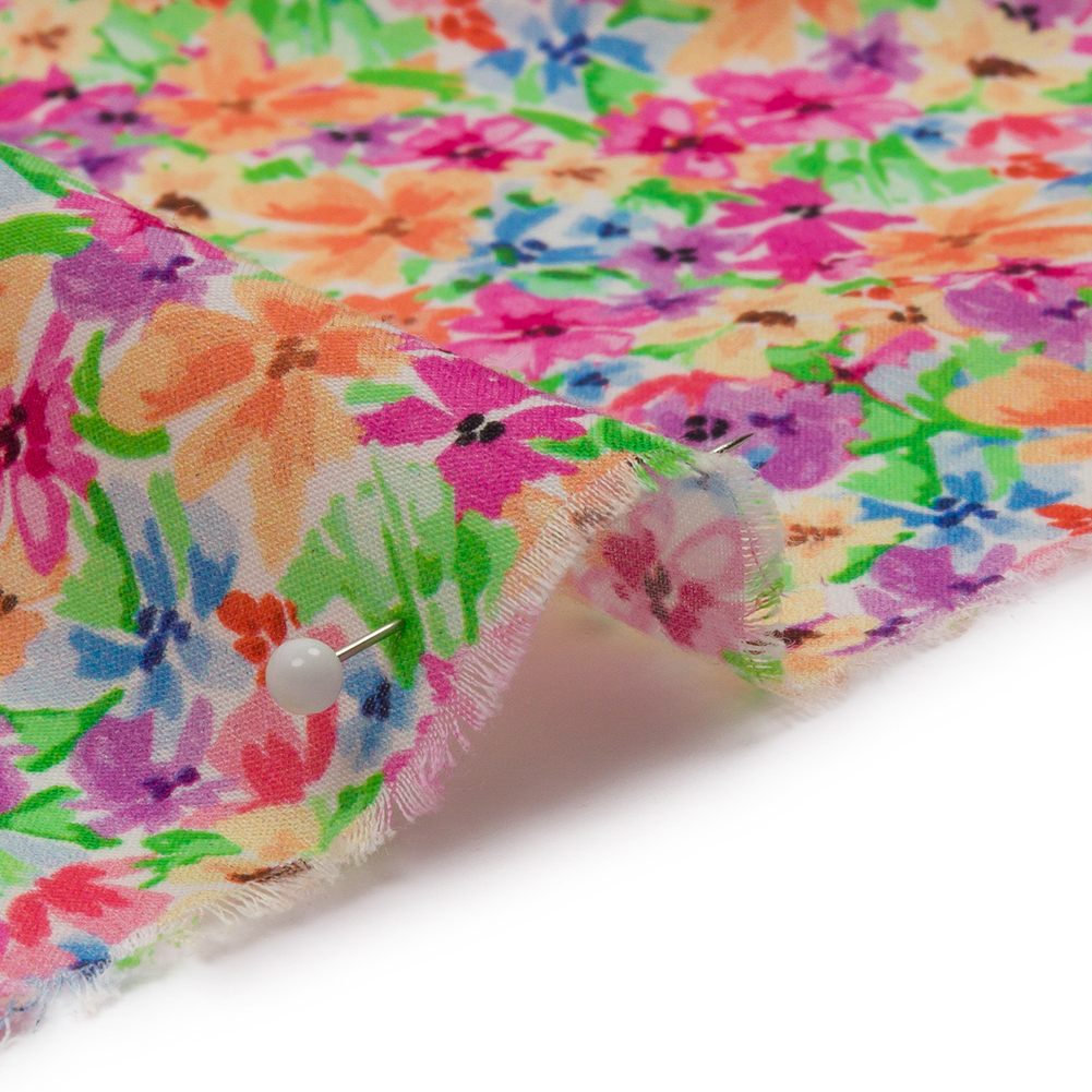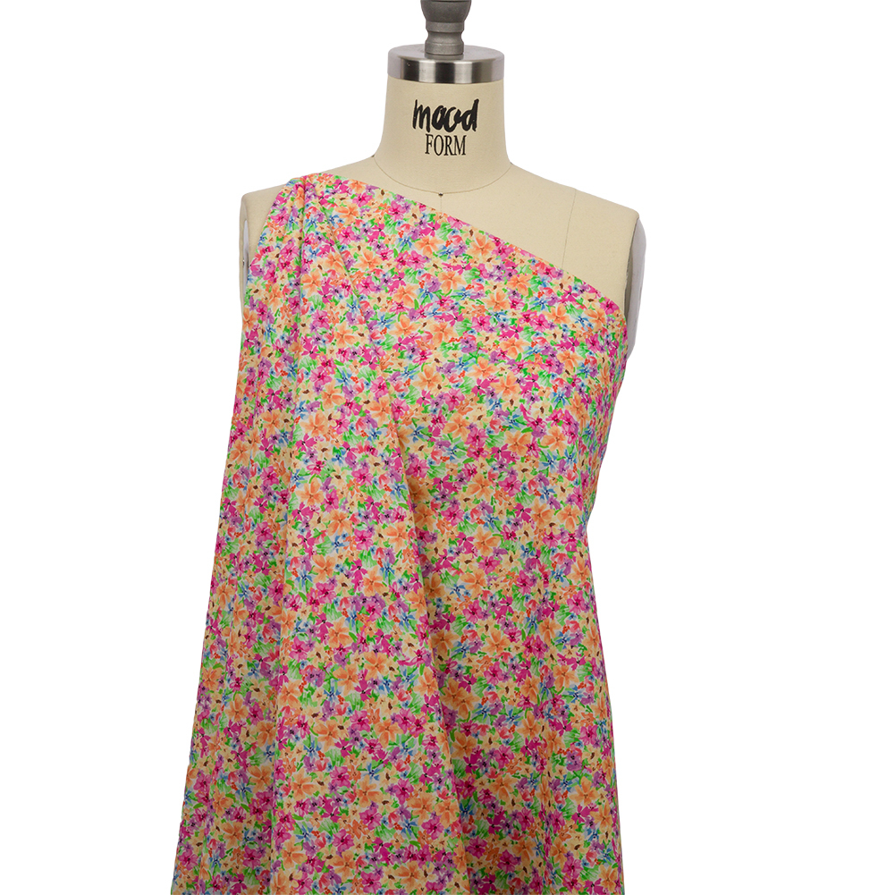 Lush landscapes, drenched in vibrant gardens, color the Isola Bella. Our Mood Exclusive Pink Isola Bella Cotton Voile displays the beauty of this Italian island in watercolor flowers of pink, blue, and orange hues. Voile is a lightweight, 100% cotton fabric, with a subtle gauzy feel. The soft, crisp hand and airy drape lend themselves beautifully to romantic maxi skirts, billowing sundresses, fresh blouses, and more. Transparent; depending on the project, a lining may be required for modesty purposes.Explore Mood’s flower shop: The Secret Garden Collection is an aromatic assembly of bouquets and fields and gardens, sprawling with life and buzzing with color. Get picking!