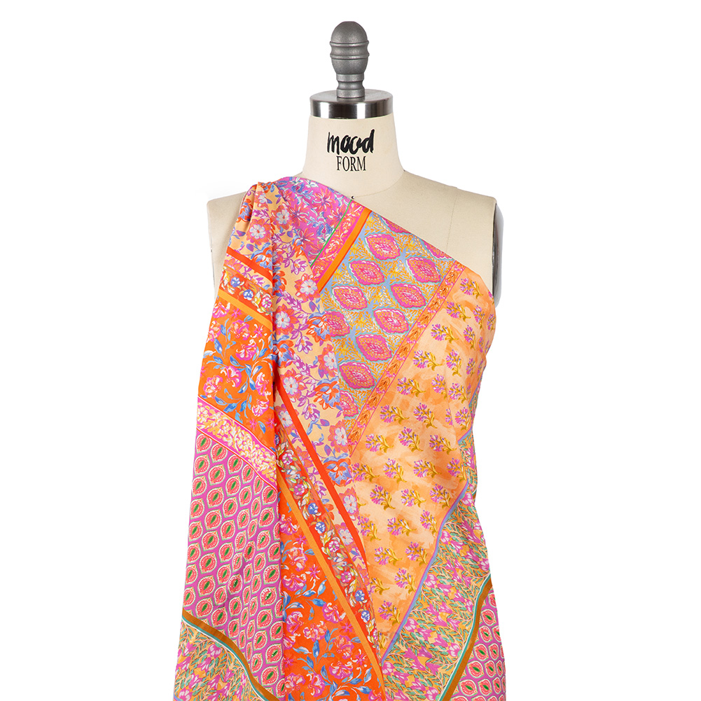 Warmly saturated fields roll under the setting summer sun as our Darling Clementine Cotton Voile. This airy voile fabric is breathable and comfortable, making it an excellent choice for warm weather attire.Suggested Projects: Dresses, BlousesContent: 100% CottonStretch: NoneOpacity: TranslucentPart of our Gisele Collection, this fabric displays the late-August harvest of vines, lilies, and berries. Peaceful panels of painted designs are colored in golden, purple, and orange tones. With a cool, crisp hand and an airy drape, cotton voile is a romantic addition to your warm-weather wardrobe. Create tiered sundresses, colorful wide-leg pants, and whimsical blouses for your next garden party. Highly translucent, a lining is suggested for added opacity and structure.