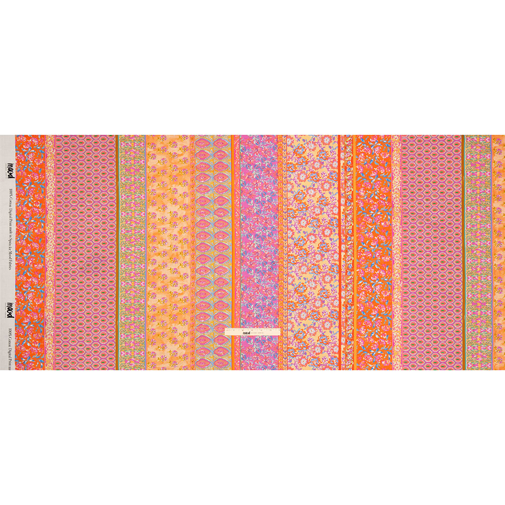Cotton Voile - Pink and Orange Floral Stripes - Darling Clementine Print - Mood Exclusive Gisele Collection