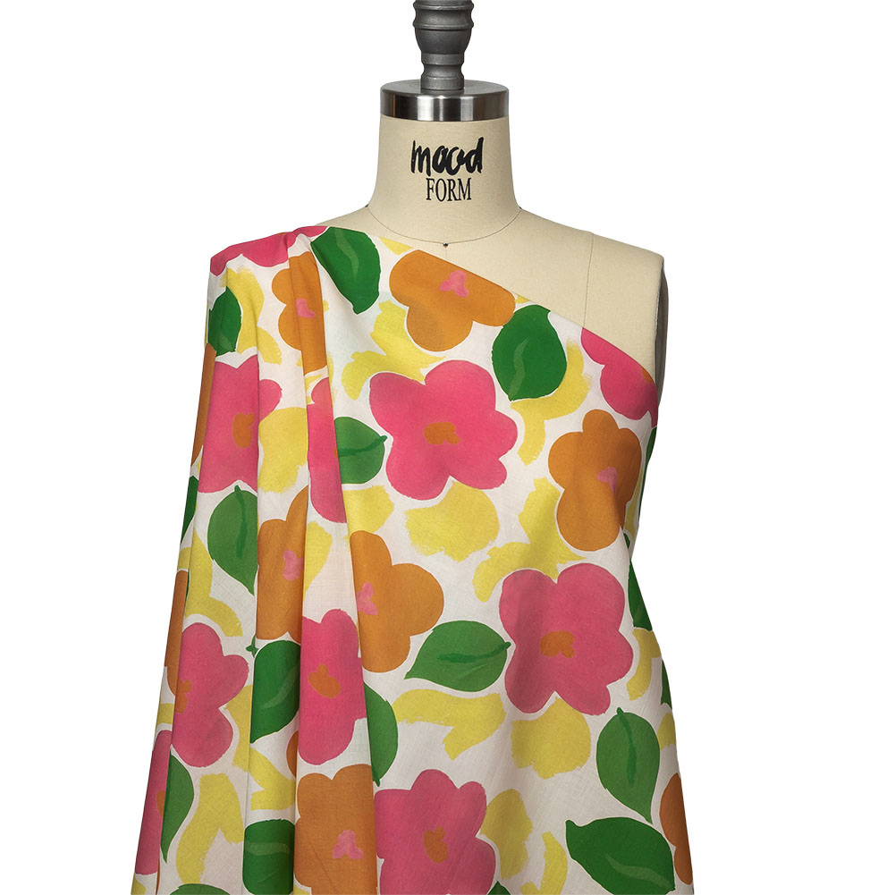 Cotton Voile - Pink and Orange Simplistic Floral - Chalk Party Print - Mood Exclusive Citrus Collection