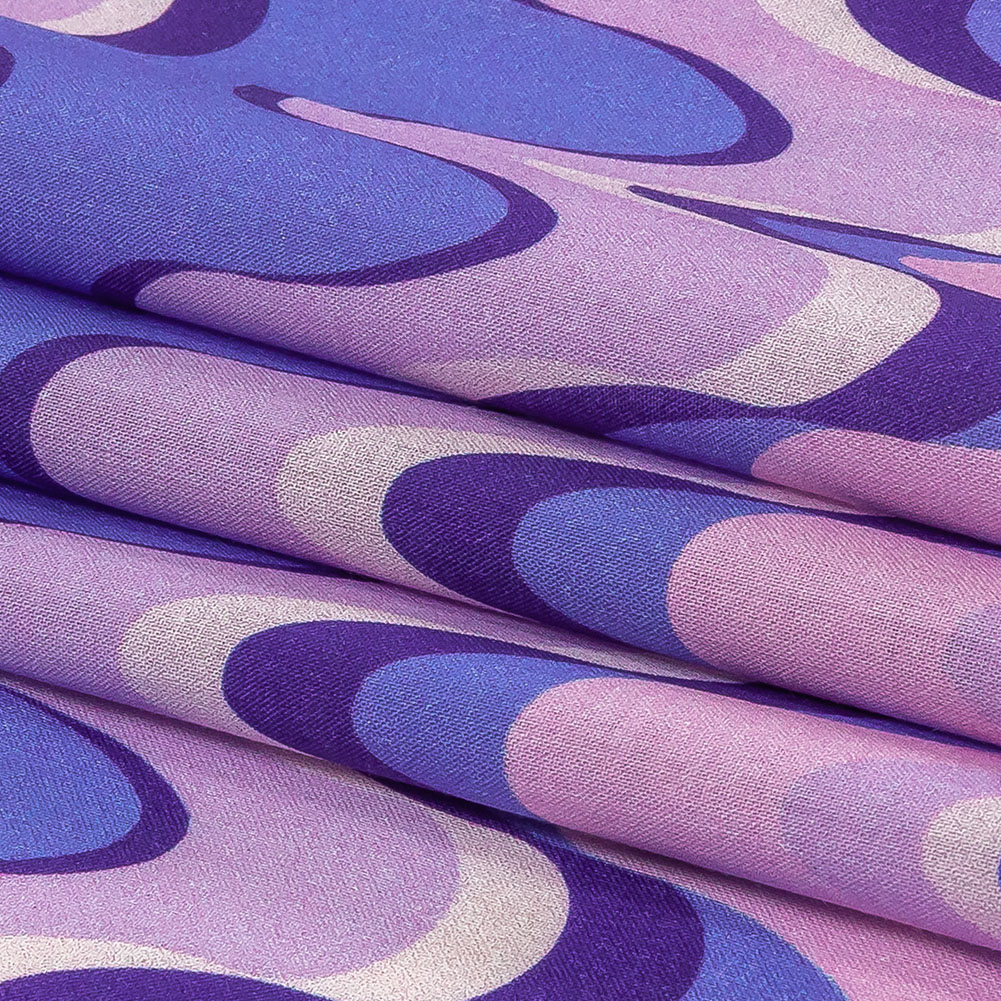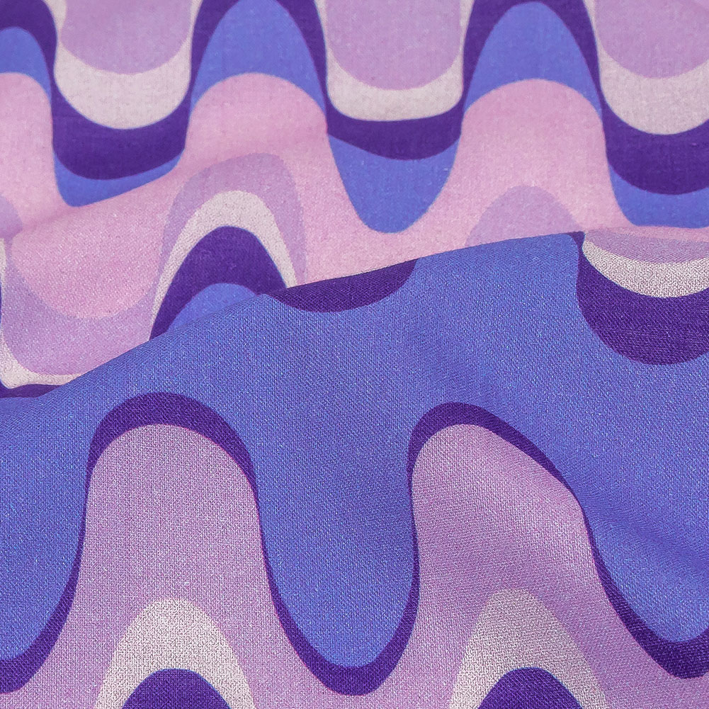 Be groovy or leave, man! This Mood Exclusive Blue Jay Waves Cotton Voile is perfect for any aspiring hippies or mod fashion fans. Graphic purple waves, crashing over a blue background, recall the psychedelic designs of the 1960's and ‘70s. Highlighted in The Indigo Collection, cotton voile is a sweet, romantic material with a soft, airy hand and a billowing drape. Create shirred blouses, loose-fit sundresses, or whimsical skirts. Highly translucent, a lining may be desired for added structure and modesty depending on its application. Swing by our Mood Sewciety Blog to take a glance at over 300 free sewing patterns for more inspiration. For cotton voile, we recommend the Bridgerton Dress, Wilder Top, and Caraway Blouse.MoodEarth Verified: BCI, or Better Cotton Initiative, focuses on the exchange of good practices, including economic, environmental, and social concerns, in the production of cotton. For more information on Mood's sustainability initiatives, check out MoodEarth here.