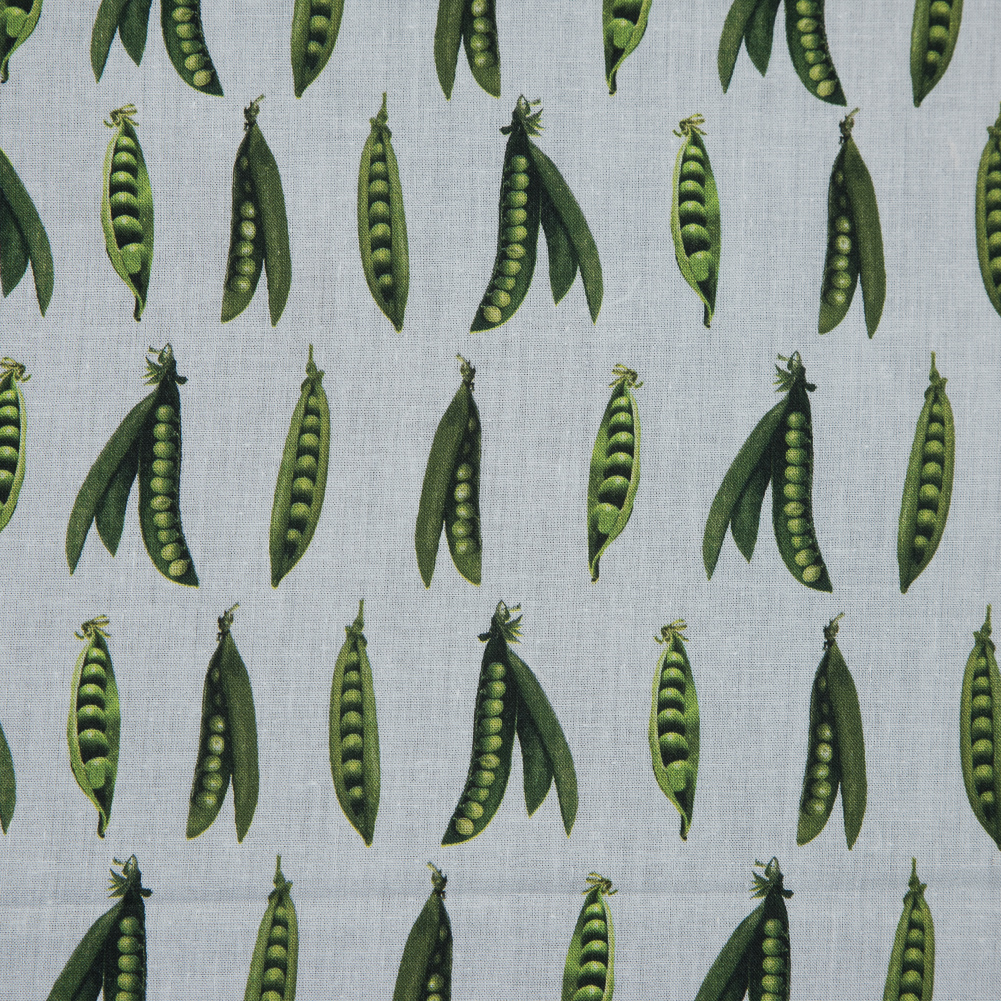 Cotton Voile - White and Green Pea Pods - January Peas Print - Mood Exclusive Aloha Collection